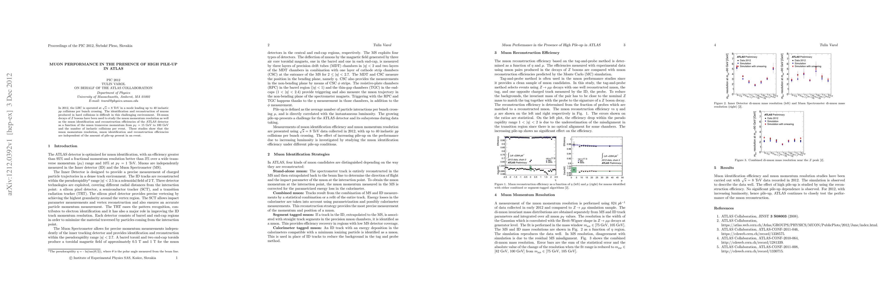 This study investigates the performance of muon identification and reconstruction in the ATLAS detector under high pile-up conditions at 8 TeV LHC collisions. Results show that muon momentum resolution and reconstruction efficiencies remain unaffected by pile-up, indicating robust performance in challenging environments.