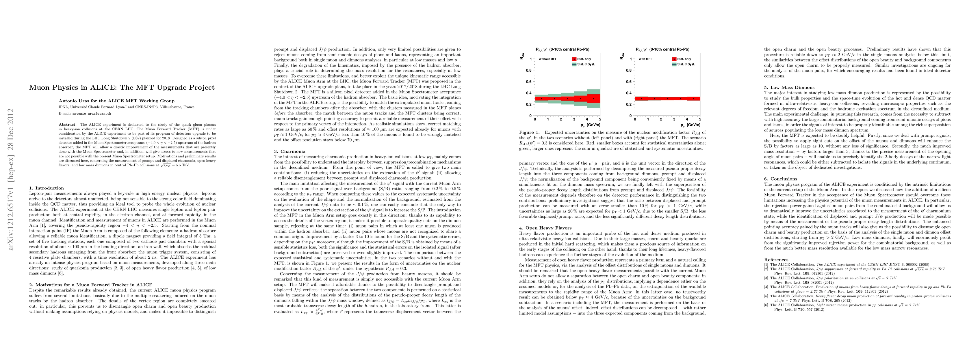 The ALICE experiment is dedicated to the study of the quark gluon plasma in heavy-ion collisions at the CERN LHC. The Muon Forward Tracker (MFT) is under consideration by the ALICE experiment to be part of its program of detectors upgrade to be installed during the LHC Long Shutdown 2 (LS2) planned for 2018. Designed as a silicon pixel detector added in the Muon Spectrometer acceptance ($-4.0 < \eta < -2.5$) upstream of the hadron absorber, the MFT will allow a drastic improvement of the measurements that are presently done with the Muon Spectrometer and, in addition, will give access to new measurements that are not possible with the present Muon Spectrometer setup. Motivations and preliminary results are discussed here, concerning the measurement of prompt and displaced charmonia, open heavy flavors, and low mass dimuons in central Pb--Pb collisions at $\sqrt{s_{NN}} = 5.5$ TeV.
