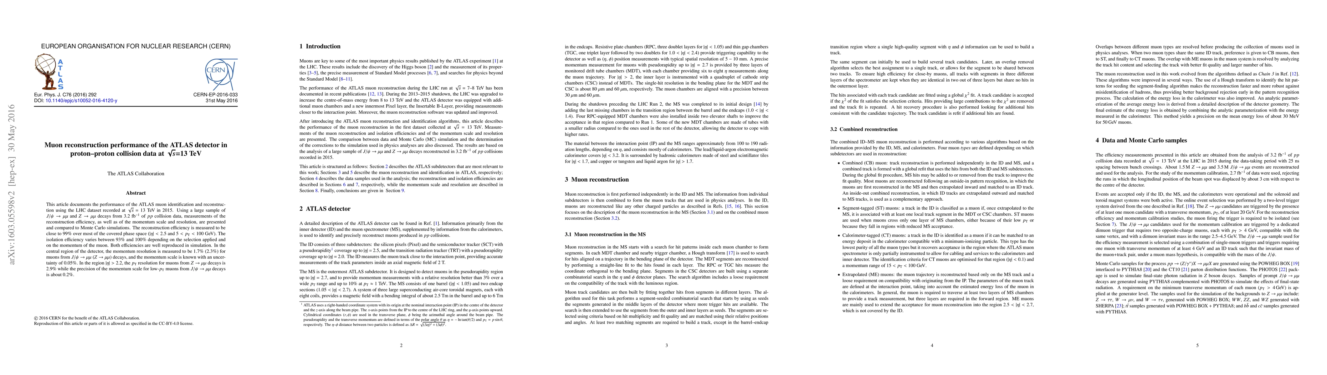 This article documents the performance of the ATLAS muon identification and reconstruction using the first LHC dataset recorded at $\sqrt{s}$ = 13 TeV in 2015. Using a large sample of $J/\psi\to\mu\mu$ and $Z\to\mu\mu$ decays from 3.2 fb$^{-1}$ of $pp$ collision data, measurements of the reconstruction efficiency, as well as of the momentum scale and resolution, are presented and compared to Monte Carlo simulations. The reconstruction efficiency is measured to be close to $99\%$ over most of the covered phase space ($|\eta|<2.5$ and $5 < p_{T} < 100$ GeV). The isolation efficiency varies between $93\%$ and $100\%$ depending on the selection applied and on the momentum of the muon. Both efficiencies are well reproduced in simulation. In the central region of the detector, the momentum resolution is measured to be $1.7\%$ ($2.3\%$) for muons from $J/\psi\to\mu\mu$ ($Z\to\mu\mu$) decays, and the momentum scale is known with an uncertainty of $0.05\%$. In the region $|\eta |>2.2$, the $p_{T} $ resolution for muons from $Z\to\mu\mu$ decays is $2.9\%$ while the precision of the momentum scale for low-$p_{T} $ muons from $J/\psi\to\mu\mu$ decays is about $0.2\%$.