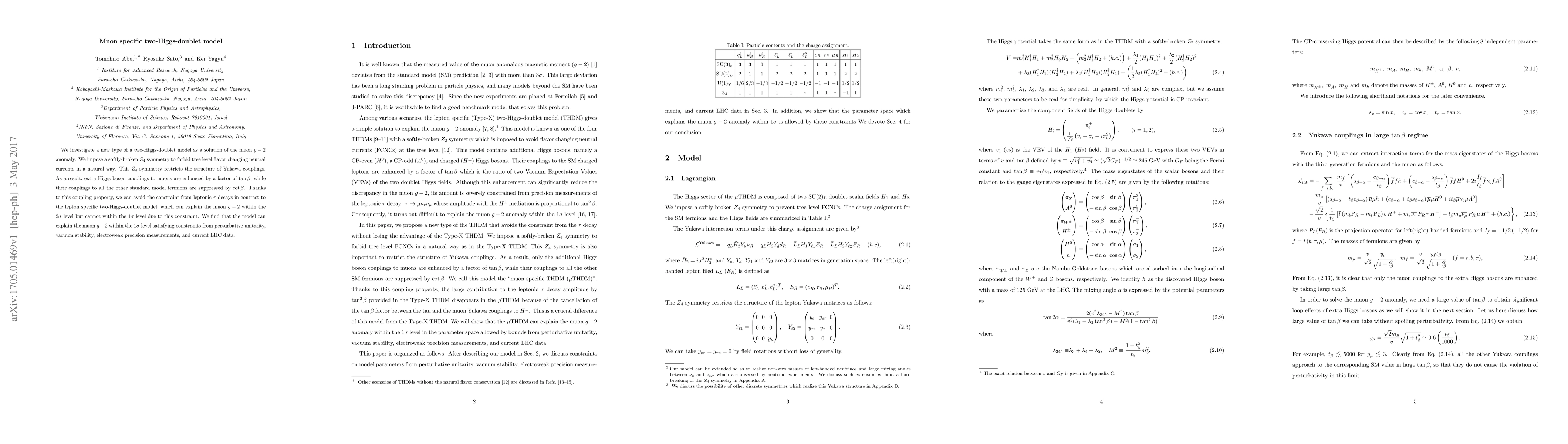 The paper introduces a novel µTHDM with a softly-broken Z4 symmetry that enhances muon couplings to additional Higgs bosons while suppressing other SM fermion couplings, providing a solution to the muon g-2 anomaly within 1σ while respecting various experimental constraints.