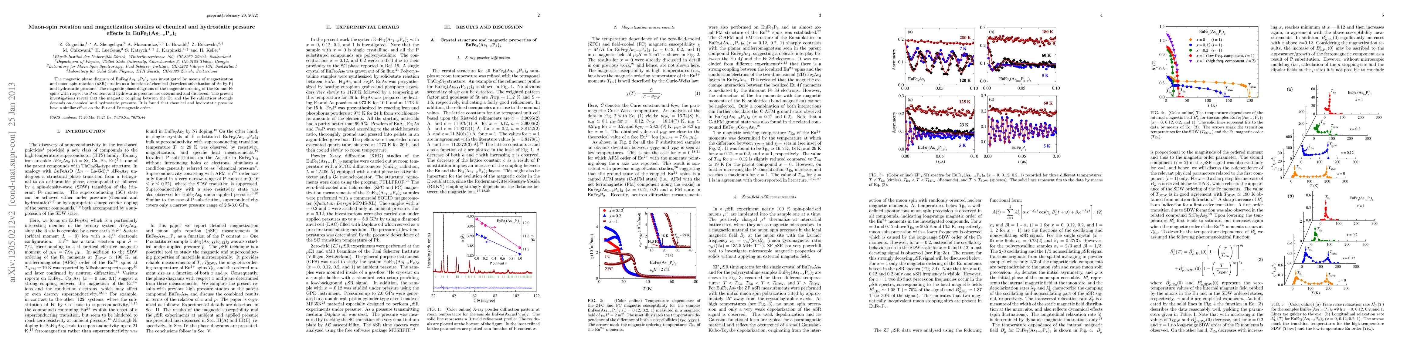 This paper investigates the magnetic phase diagram of EuFe$_{2}$(As$_{1-x}$P$_{x}$)$_{2}$ under chemical and hydrostatic pressure using magnetization and muon-spin rotation techniques. The study reveals that both chemical substitution and hydrostatic pressure significantly influence the magnetic coupling between Eu and Fe sublattices, with similar effects observed for both pressure types.