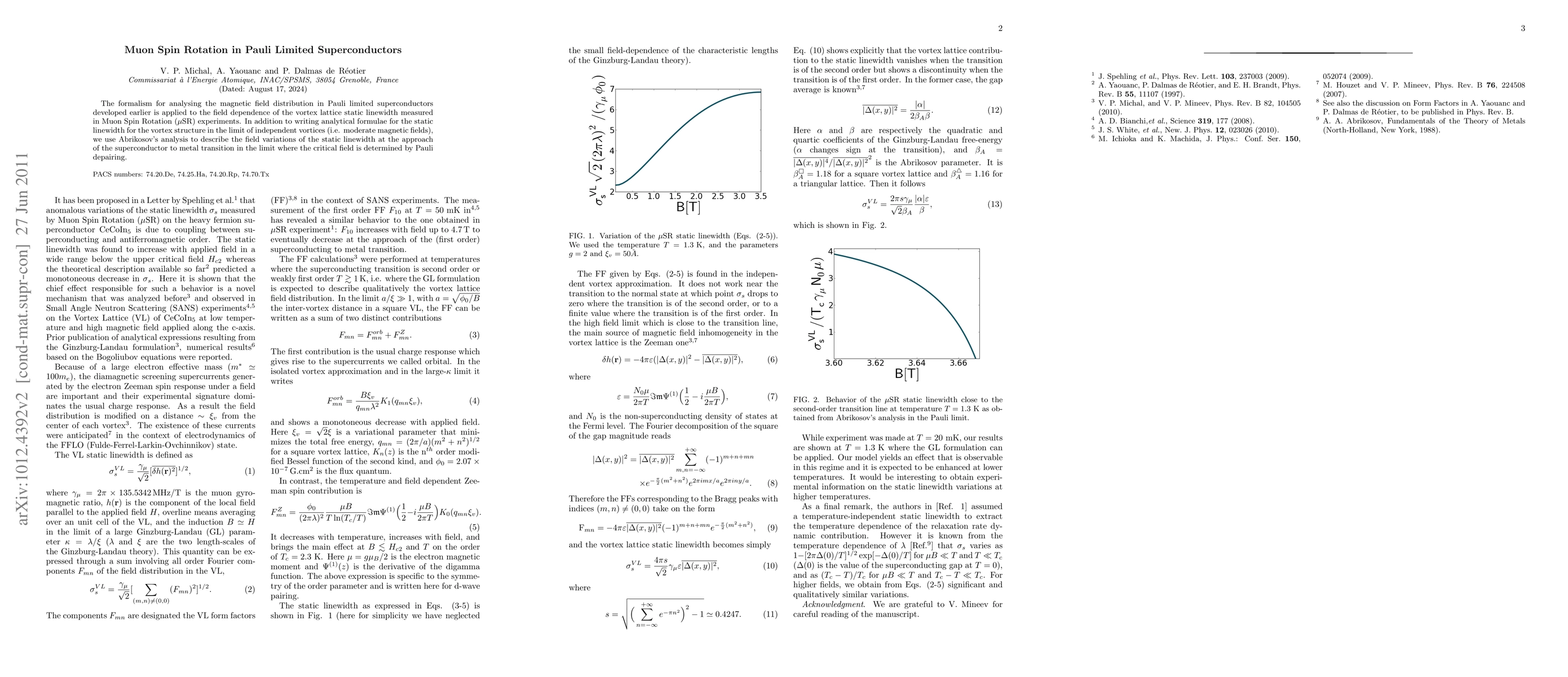 The formalism for analysing the magnetic field distribution in Pauli limited superconductors developed earlier is applied to the field dependence of the vortex lattice static linewidth measured in Muon Spin Rotation ($\mu$SR) experiments. In addition to writing analytical formulae for the static linewidth for the vortex structure in the limit of independent vortices (i.e. moderate magnetic fields), we use Abrikosov's analysis to describe the field variations of the static linewidth at the approach of the superconductor to metal transition in the limit where the critical field is determined by Pauli depairing.