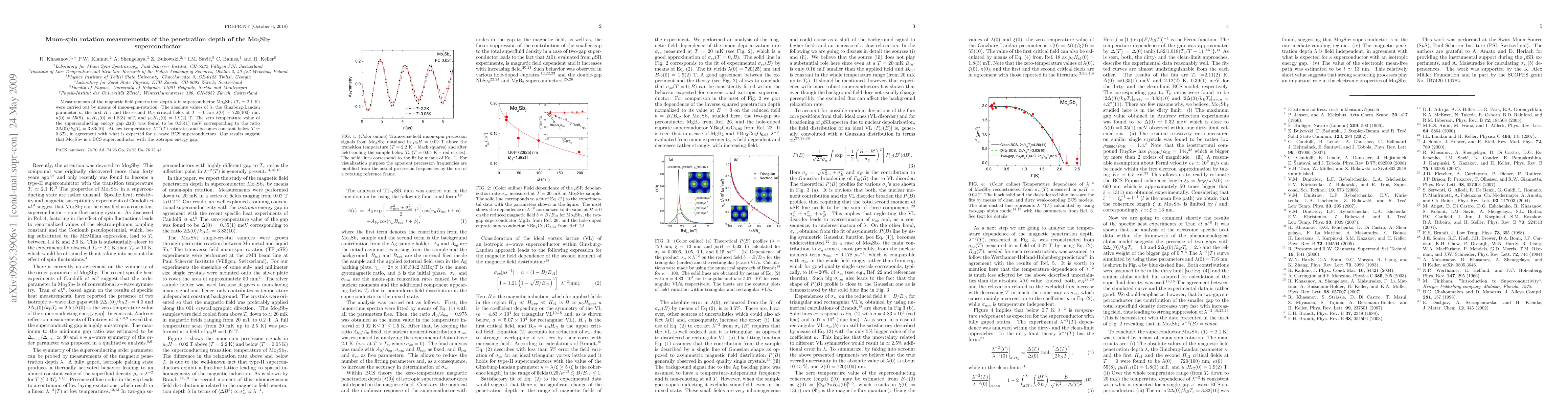 Measurements of the magnetic field penetration depth \lambda in superconductor Mo_3Sb_7 (T_c~2.1 K) were carried out by means of muon-spin-rotation. The absolute values of \lambda, the Ginzburg-Landau parameter \kappa, the first H_{c1} and the second H_{c2} critical fields at T=0 are \lambda(0)=720(100)nm, \kappa(0)=55(9), \mu_0H_{c1}(0)=1.8(3)mT, and \mu_0H_{c2}(0)=1.9(2)T. The zero temperature value of the superconducting energy gap \Delta(0) was found to be 0.35(1)meV corresponding to the ratio 2\Delta(0)/k_BT_c=3.83(10). At low temperatures \lambda^{-2}(T) saturates and becomes constant below T~0.3T_c, in agreement with what is expected for s-wave BCS superconductors. Our results suggest that Mo_3Sb_7 is a BCS superconductor with the isotropic energy gap