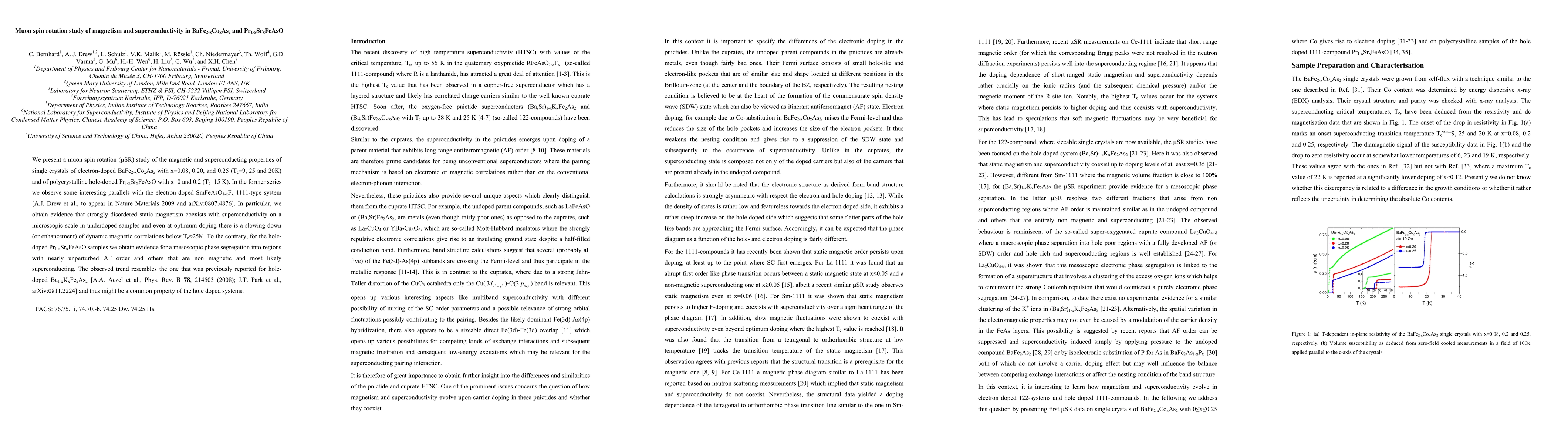 This paper uses muon spin rotation (\muSR) to investigate the coexistence of magnetism and superconductivity in electron-doped BaFe2-xCoxAs2 and hole-doped Pr1-xSrxFeAsO. It finds that underdoped BaFe2-xCoxAs2 exhibits static magnetism coexisting with superconductivity, while hole-doped Pr1-xSrxFeAsO shows phase segregation into magnetic and non-magnetic regions, suggesting different magnetic behaviors in electron and hole-doped systems.