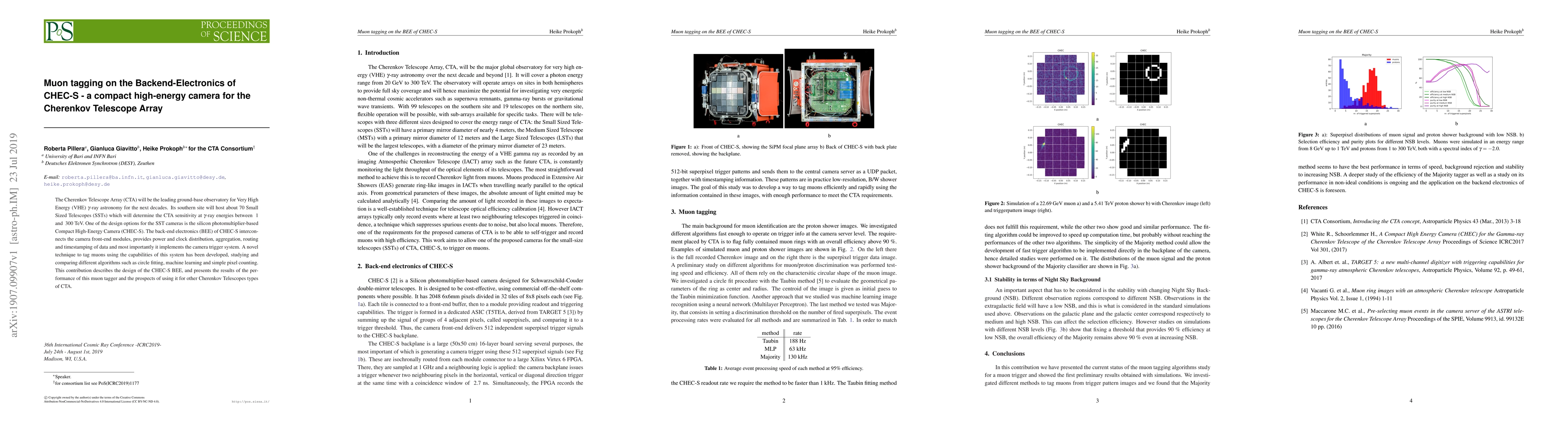 The paper discusses the development of a muon tagging system for the back-end electronics of CHEC-S, a silicon photomultiplier-based camera for the Cherenkov Telescope Array. It evaluates various algorithms for muon detection and presents the performance of the implemented muon tagger.