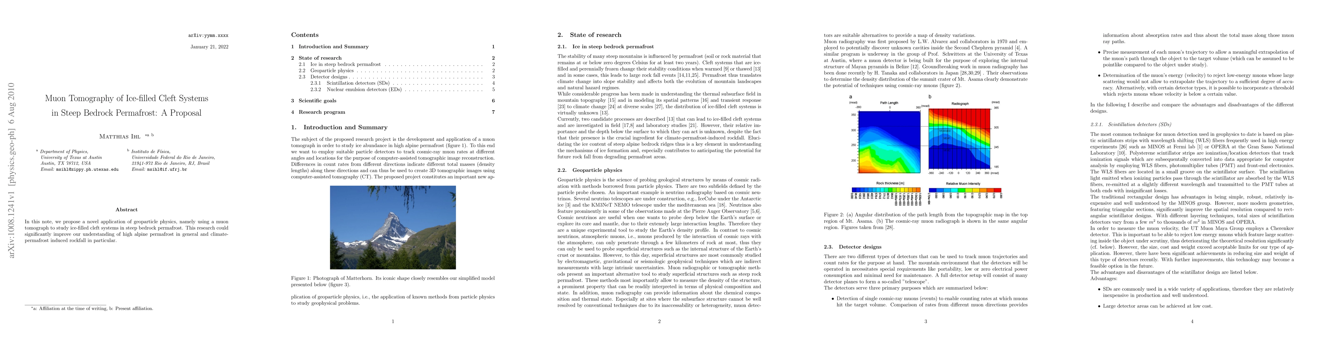 Researchers propose using muon tomography to study ice-filled cleft systems in steep bedrock permafrost, aiming to improve understanding of high-altitude permafrost and climate-induced rockfall.