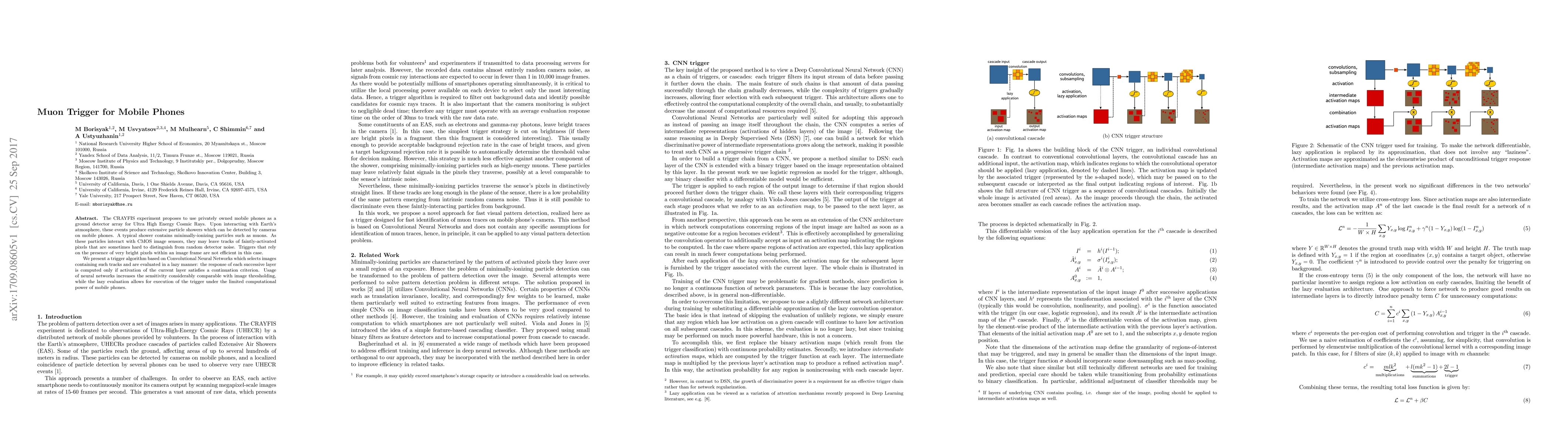 The CRAYFIS experiment aims to use mobile phones as detectors for Ultra High Energy Cosmic Rays by employing a Convolutional Neural Network trigger algorithm to identify faint muon tracks in images, enhancing sensitivity while optimizing computational efficiency for mobile devices.