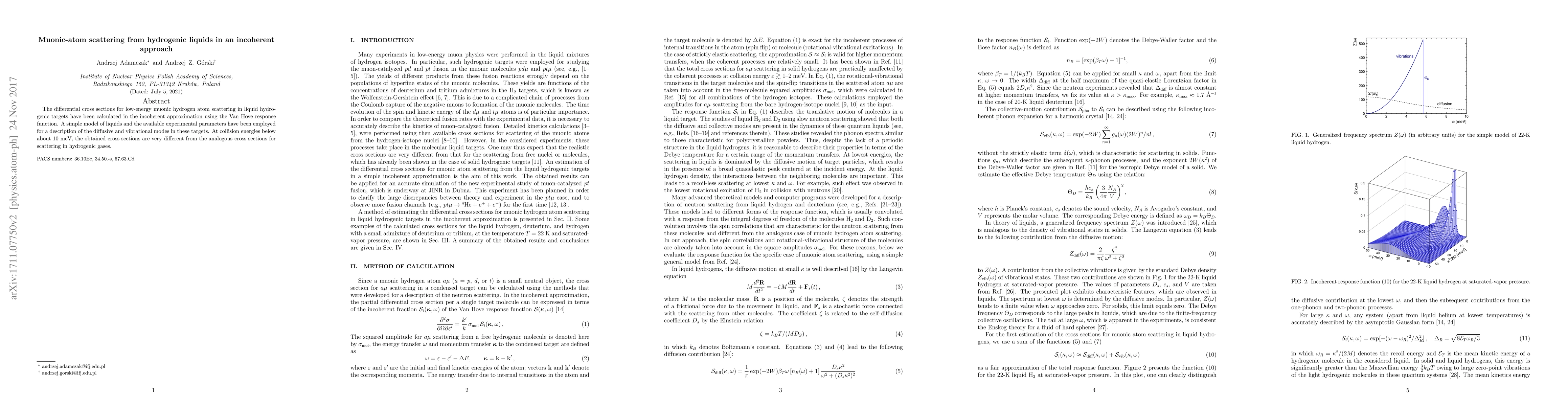 This paper calculates the differential cross sections for low-energy muonic hydrogen atom scattering in liquid hydrogenic targets using an incoherent approach and Van Hove response function. The results show significant differences in scattering cross sections compared to hydrogenic gases at collision energies below 10 meV.