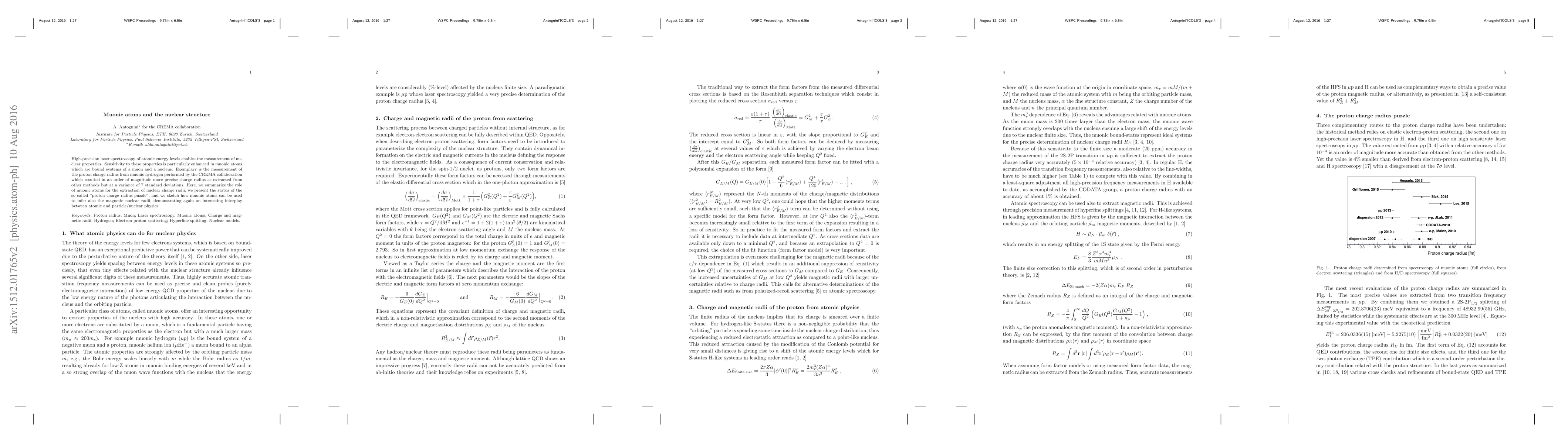 High-precision laser spectroscopy of atomic energy levels enables the measurement of nuclear properties. Sensitivity to these properties is particularly enhanced in muonic atoms which are bound systems of a muon and a nucleus. Exemplary is the measurement of the proton charge radius from muonic hydrogen performed by the CREMA collaboration which resulted in an order of magnitude more precise charge radius as extracted from other methods but at a variance of 7 standard deviations. Here, we summarize the role of muonic atoms for the extraction of nuclear charge radii, we present the status of the so called "proton charge radius puzzle", and we sketch how muonic atoms can be used to infer also the magnetic nuclear radii, demonstrating again an interesting interplay between atomic and particle/nuclear physics.