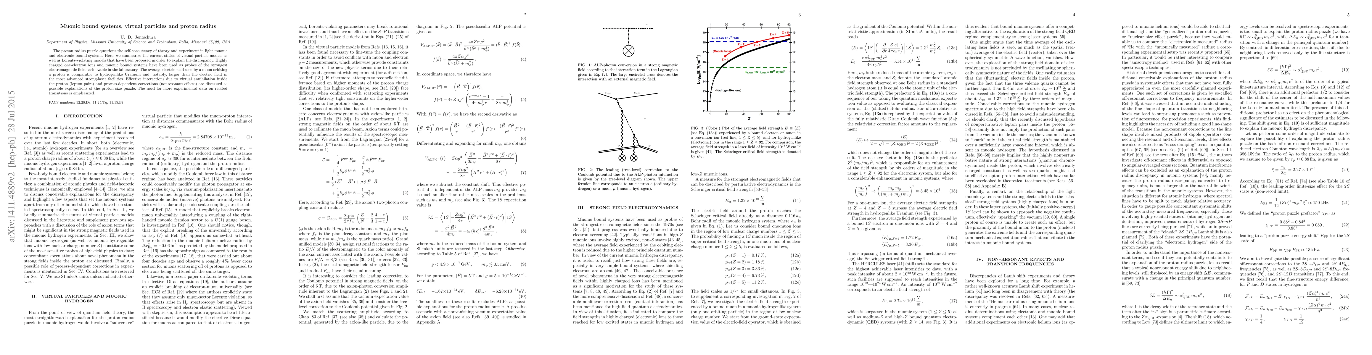 The proton radius puzzle questions the self-consistency of theory and experiment in light muonic and electronic bound systems. Here, we summarize the current status of virtual particle models as well as Lorentz-violating models that have been proposed in order to explain the discrepancy. Highly charged one-electron ions and muonic bound systems have been used as probes of the strongest electromagnetic fields achievable in the laboratory. The average electric field seen by a muon orbiting a proton is comparable to hydrogenlike Uranium and, notably, larger than the electric field in the most advanced strong-laser facilities. Effective interactions due to virtual annihilation inside the proton (lepton pairs) and process-dependent corrections (nonresonant effects) are discussed as possible explanations of the proton size puzzle. The need for more experimental data on related transitions is emphasized.