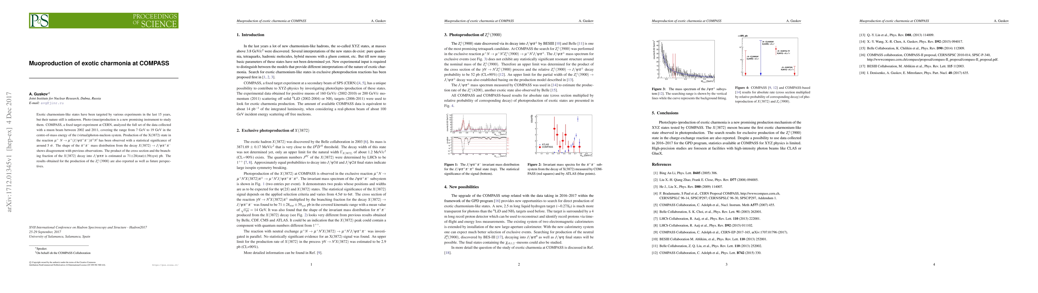 Exotic charmonium-like states have been targeted by various experiments in the last 15 years, but their nature still is unknown. Photo-(muo)production is a new promising instrument to study them. COMPASS, a fixed target experiment at CERN, analyzed the full set of the data collected with a muon beam between 2002 and 2011, covering the range from 7 GeV to 19 GeV in the centre-of-mass energy of the (virtual)photon-nucleon system. Production of the X(3872) state in the reaction $\mu^+~N \rightarrow \mu^+(J/\psi\pi^+\pi^- )\pi^{\pm} N'$ has been observed with a statistical significance of around 5 $\sigma$. The shape of the $\pi^+\pi^-$ mass distribution from the decay $X(3872)\rightarrow J/\psi\pi^+\pi^-$ shows disagreement with previous observations. The product of the cross section and the branching fraction of the $X(3872)$ decay into $J/\psi\pi\pi$ is estimated as 71$\pm$28(stat)$\pm$39(syst) pb. The results obtained for the production of the $Z_c^{\pm}(3900)$ are also reported as well as future perspectives.