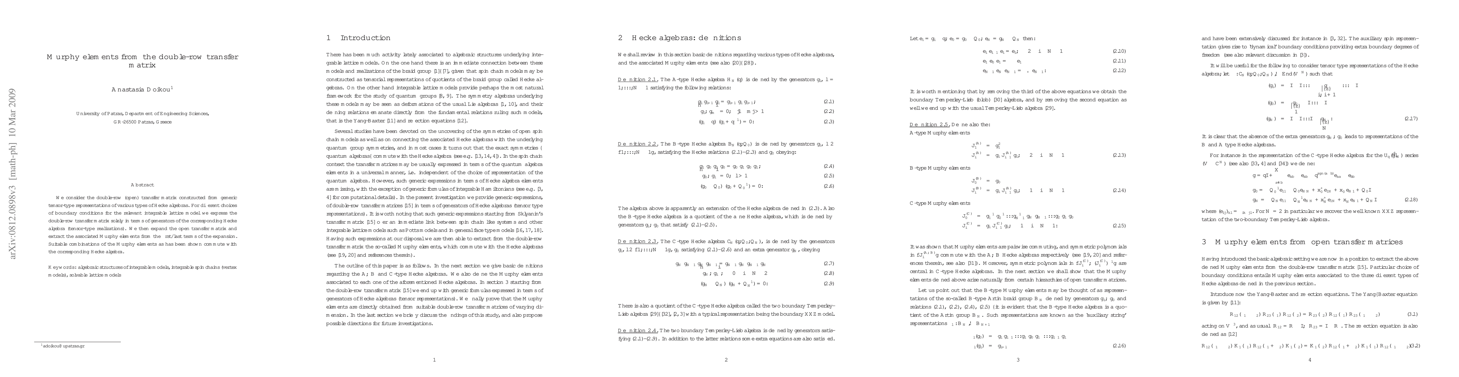 This research derives expressions for the double-row transfer matrix in terms of Hecke algebra generators, extracts Murphy elements from the matrix expansion, and demonstrates that specific combinations of these elements commute with the Hecke algebra.