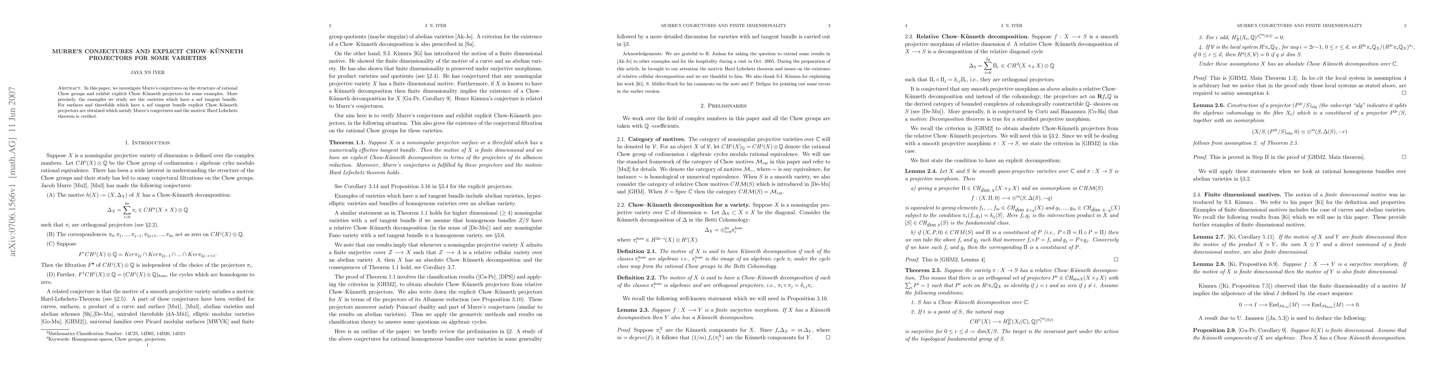 This paper investigates Murre's conjectures regarding the rational Chow groups and provides explicit Chow--Kuenneth projectors for varieties with nef tangent bundles. The study verifies these conjectures and the motivic Hard Lefschetz theorem for surfaces and threefolds with nef tangent bundles.