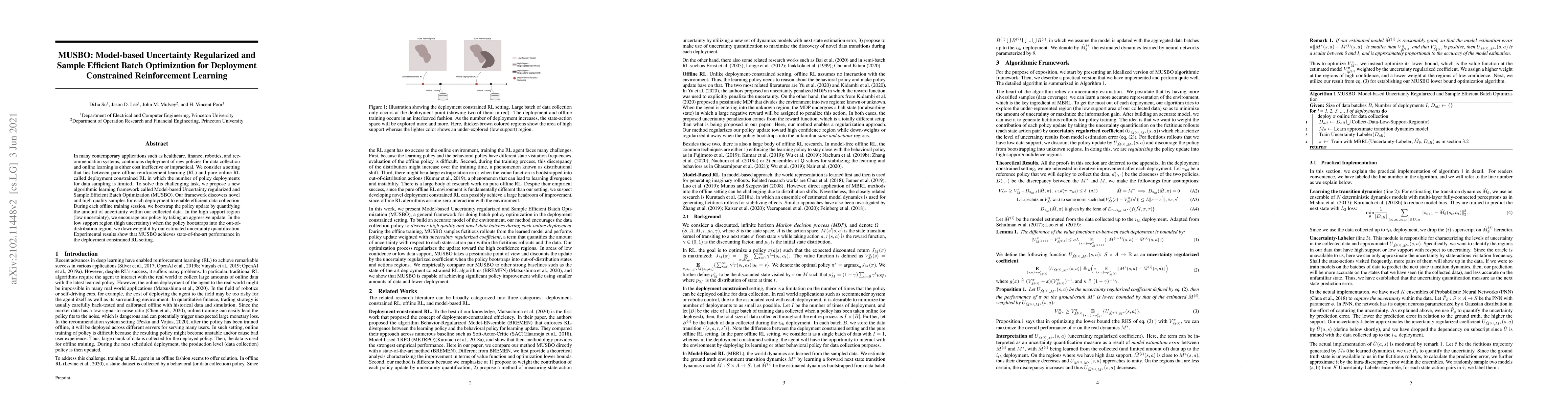 The paper proposes MUSBO, a novel framework for deployment constrained reinforcement learning that balances offline and online learning by limiting policy deployments. MUSBO efficiently collects high-quality samples through uncertainty regularization and achieves state-of-the-art performance in this setting.