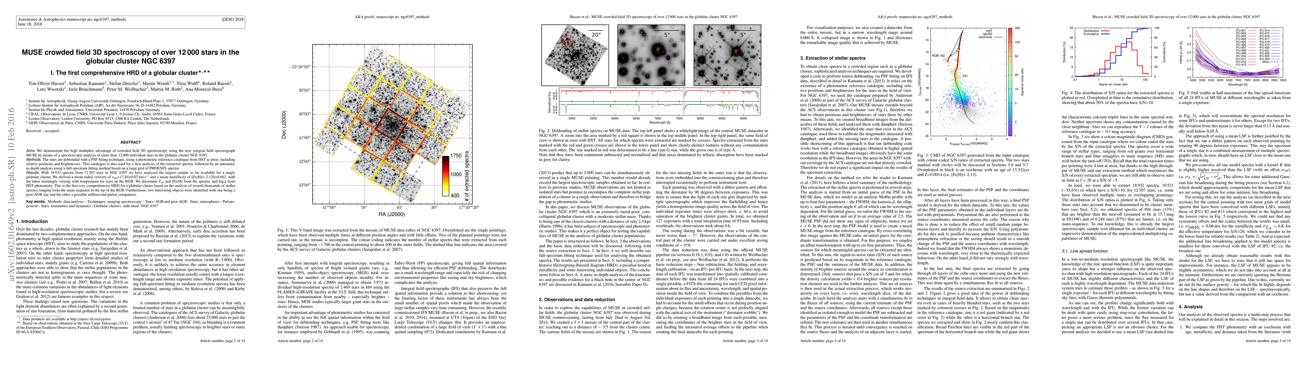 This paper utilizes MUSE's crowded field 3D spectroscopy to analyze over 12,000 stars in the globular cluster NGC 6397, producing the first comprehensive spectroscopic Hertzsprung-Russell diagram (HRD) for such a cluster. The study reveals a mean radial velocity and metallicity, identifies temperature-dependent metallicity variations, and discovers two intriguing objects, including a post-AGB star and a possible millisecond-pulsar companion.