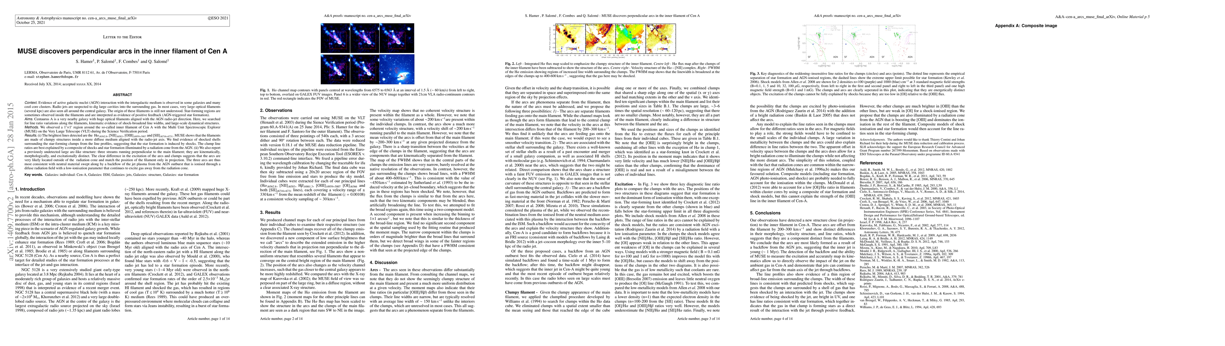 MUSE observations reveal clumpy structures in Cen A's inner filament, suggesting star formation induced by shocks from the AGN. Additionally, three perpendicular arc-like structures were found, indicating material swept by a backflow of AGN jet plasma, distinct in excitation from the star-forming clumps.