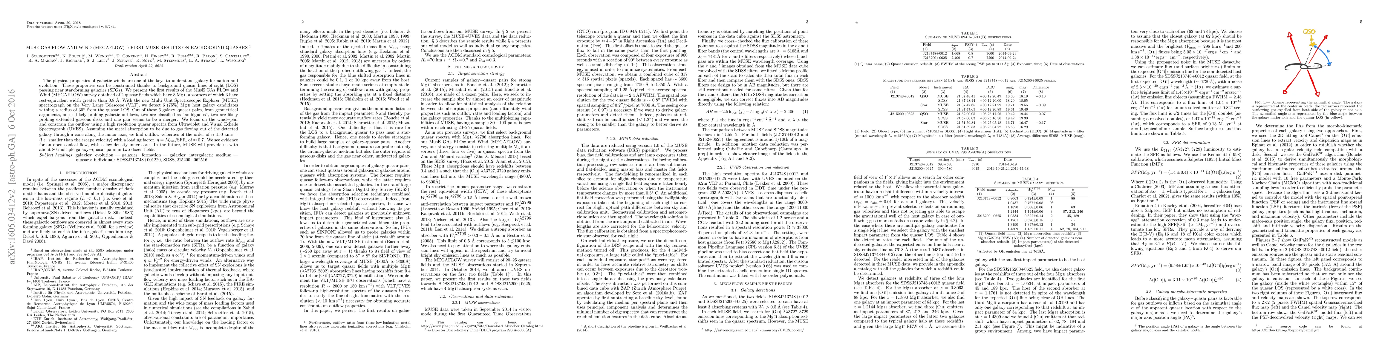 The MEGAFLOW survey uses MUSE on the VLT to study galactic winds via quasar absorption lines, identifying 6 MgII host galaxy candidates near quasars. One pair shows evidence of a galactic outflow with velocities around 150 km/s, suggesting an open conical flow with a low-density core.