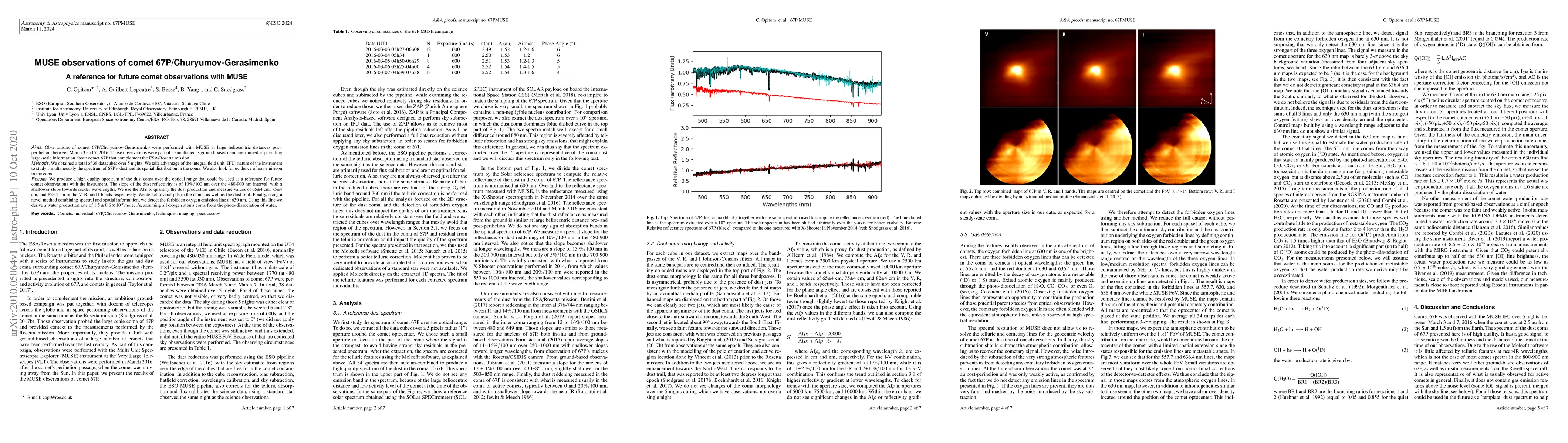 Observations of comet 67P/Churyumov-Gerasimenko were performed with MUSE at large heliocentric distances post-perihelion, between March 3 and 7, 2016. Those observations were part of a simultaneous ground-based campaign aimed at providing large-scale information about comet 67P that complement the ESA/Rosetta mission. We obtained a total of 38 datacubes over 5 nights. We take advantage of the integral field unit (IFU) nature of the instrument to study simultaneously the spectrum of 67P's dust and its spatial distribution in the coma. We also look for evidence of gas emission in the coma. We produce a high quality spectrum of the dust coma over the optical range that could be used as a reference for future comet observations with the instrument. The slope of the dust reflectivity is of 10%$/100$ nm over the 480-900 nm interval, with a shallower slope towards redder wavelengths. We use the $\mathrm{Af\rho}$ to quantify the dust production and measure values of 65$\pm$4 cm, 75$\pm$4 cm, and 82$\pm$4 cm in the V, R, and I bands respectively. We detect several jets in the coma, as well as the dust trail. Finally, using a novel method combining spectral and spatial information, we detect the forbidden oxygen emission line at 630 nm. Using this line we derive a water production rate of $1.5\pm0.6 \times 10^{26} \mathrm{molec./s}$, assuming all oxygen atoms come from the photo-dissociation of water.