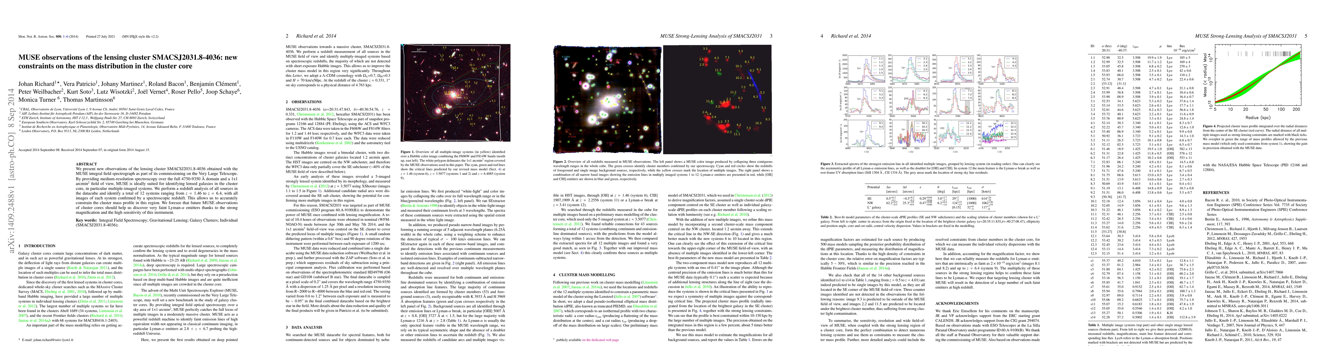 The MUSE spectrograph on the Very Large Telescope provided new observations of the lensing cluster SMACSJ2031.8-4036, identifying 12 lensed galaxy systems and enabling precise constraints on the cluster's mass distribution in the core. Future observations promise to reveal faint Lyman-alpha emitters due to strong magnification and high sensitivity.