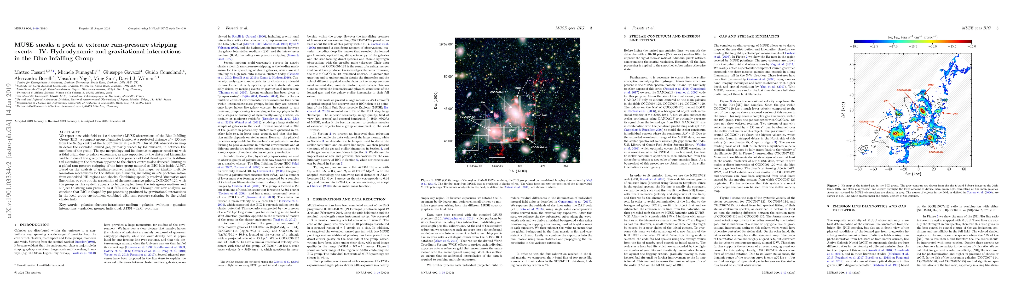 This paper reports MUSE observations of the Blue Infalling Group (BIG), revealing detailed ionized gas dynamics and morphology consistent with tidal interactions and ram-pressure stripping as BIG falls into the A1367 cluster. The study identifies multiple ionization mechanisms for the gas and suggests that the most massive galaxy is decoupled from the group, indicating strong external influences.