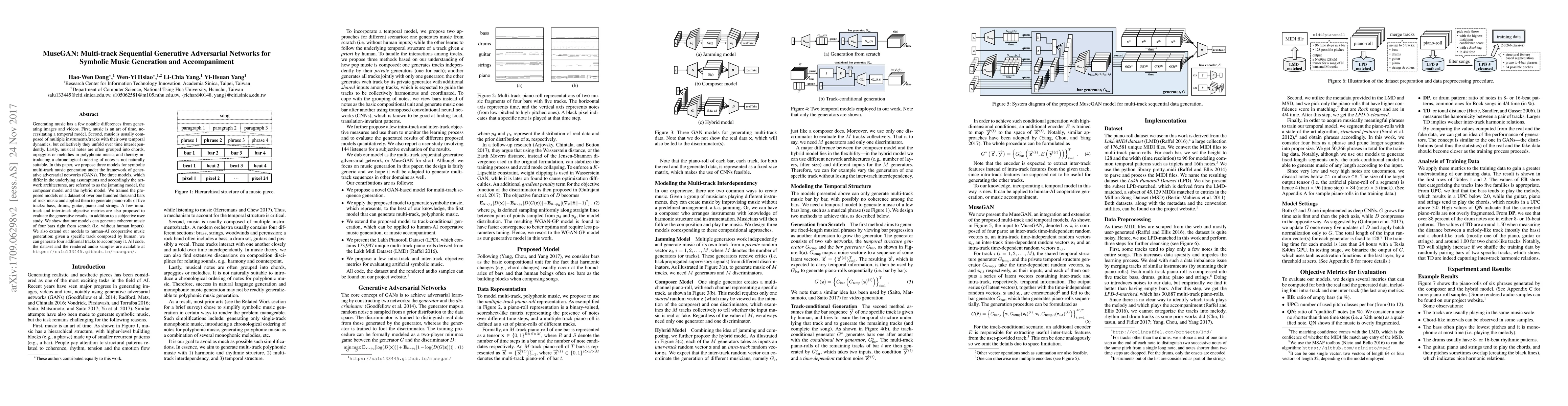This paper introduces MuseGAN, a framework employing multi-track GANs for generating coherent symbolic music with multiple interdependent tracks. The proposed jamming, composer, and hybrid models were trained on a large rock music dataset and can generate piano-rolls for five instrumental tracks, with both objective metrics and user studies validating their effectiveness.