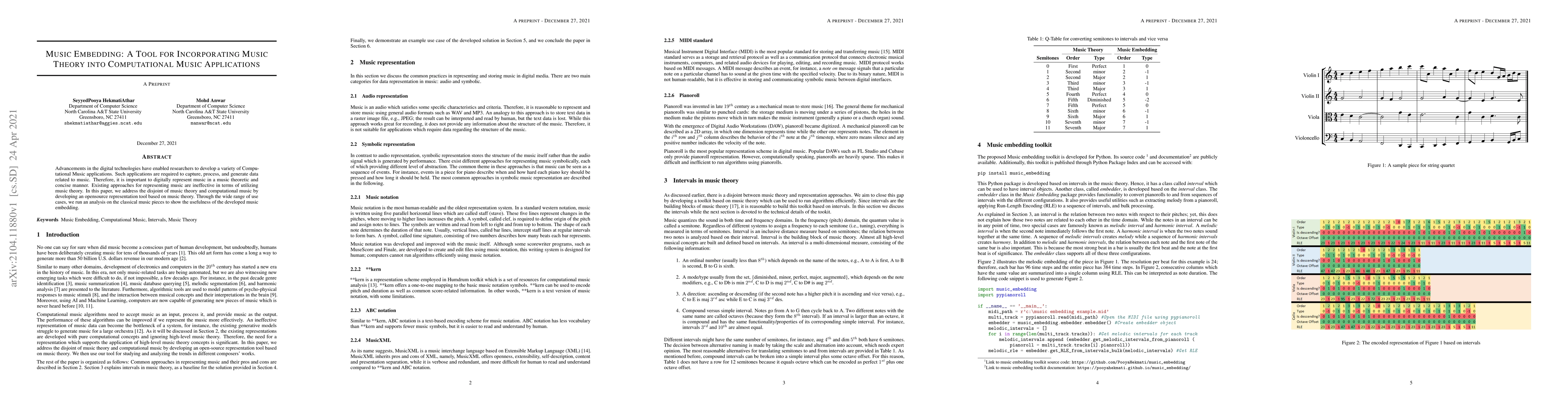 This paper introduces a new open-source tool for digitally representing music based on music theory, aiming to bridge the gap between theoretical and computational music applications. The developed music embedding is demonstrated through its effectiveness in analyzing classical music pieces.