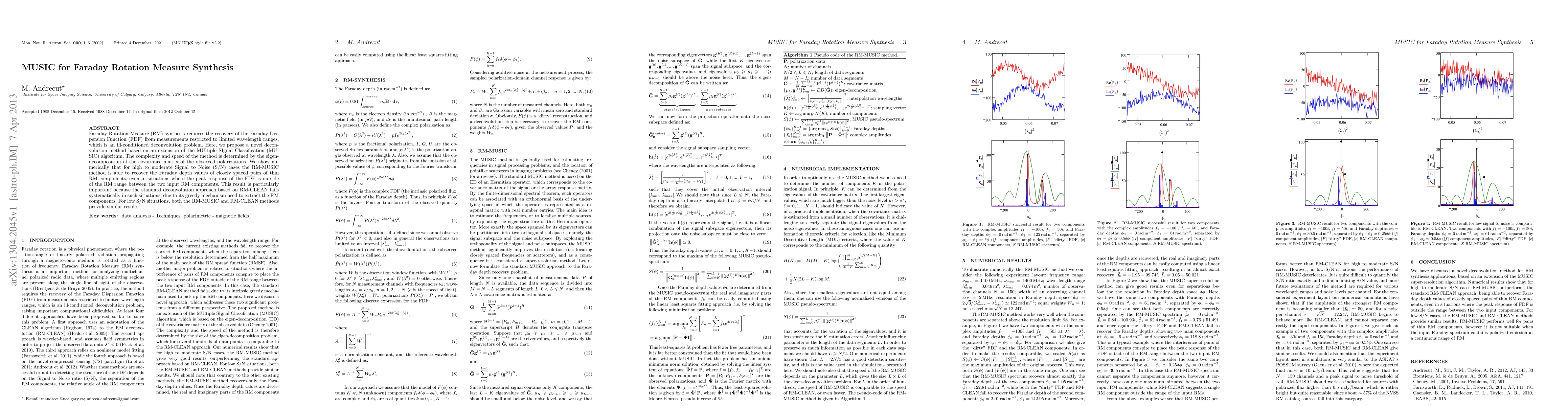 The paper proposes a novel MUSIC-based deconvolution method for Faraday Rotation Measure (RM) synthesis, demonstrating its effectiveness in recovering closely spaced RM components even when standard RM-CLEAN methods fail. The method's performance is shown to be superior for high to moderate Signal to Noise Ratios.