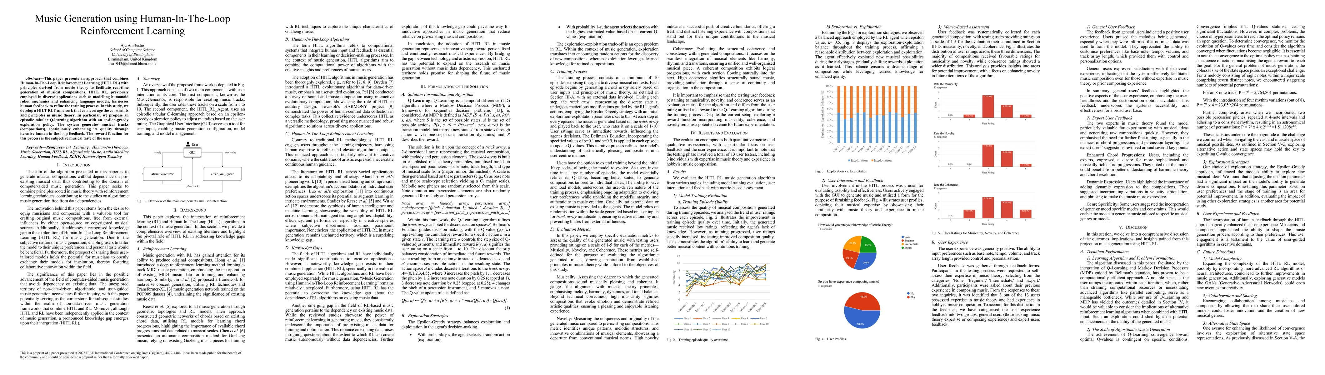 This paper introduces a Human-In-The-Loop Reinforcement Learning framework for real-time music composition, utilizing human feedback to refine the process. The proposed system employs an episodic tabular Q-learning algorithm with epsilon-greedy exploration, enhancing musical tracks through iterative user feedback and subjective musical taste.