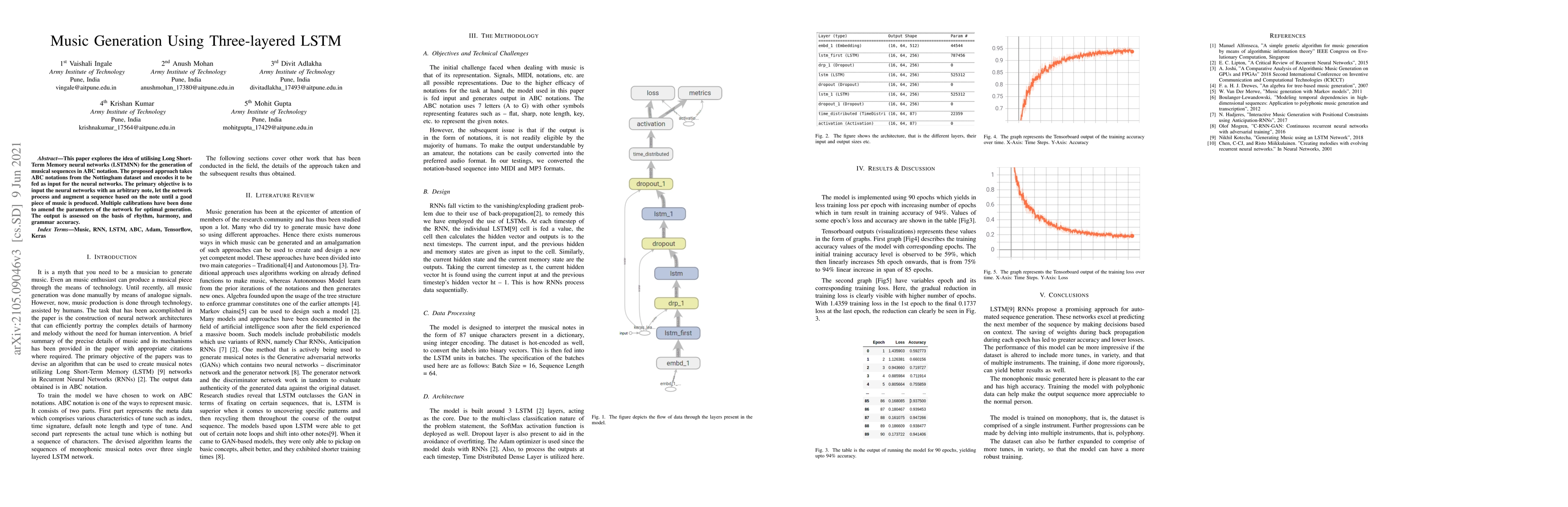This paper explores using Long Short-Term Memory networks to generate musical sequences in ABC notation, with a focus on optimizing parameters for rhythm, harmony, and grammar accuracy.