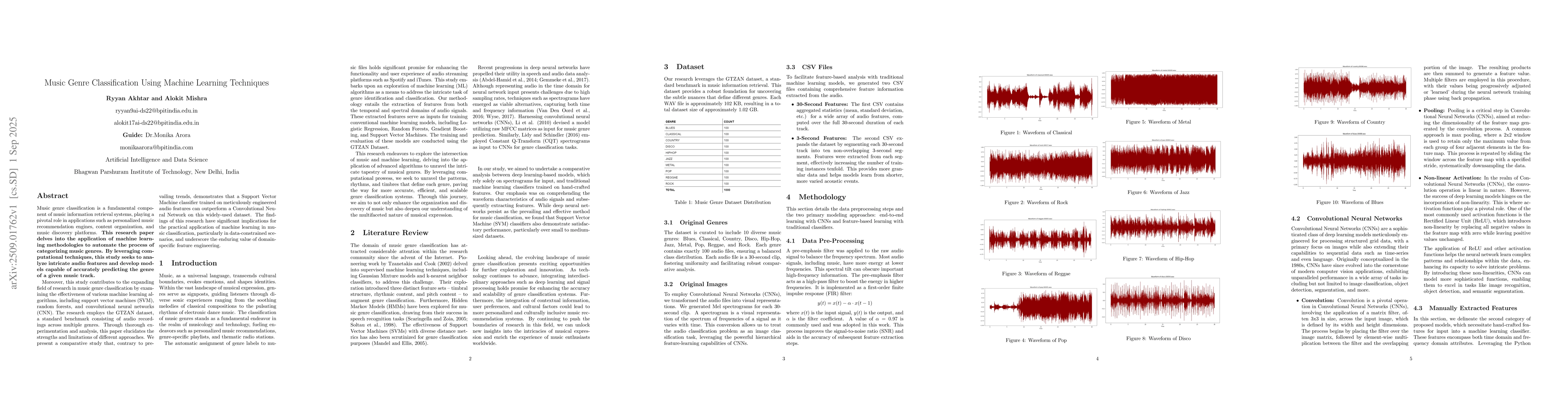 This paper presents a comparative analysis of machine learning methodologies for automatic music genre classification. We evaluate the performance of classical classifiers, including Support Vector Machines (SVM) and ensemble methods, trained on a comprehensive set of hand-crafted audio features, against a Convolutional Neural Network (CNN) operating on Mel spectrograms. The study is conducted on the widely-used GTZAN dataset. Our findings demonstrate a noteworthy result: the SVM, leveraging domain-specific feature engineering, achieves superior classification accuracy compared to the end-to-end CNN model. We attribute this outcome to the data-constrained nature of the benchmark dataset, where the strong inductive bias of engineered features provides a regularization effect that mitigates the risk of overfitting inherent in high-capacity deep learning models. This work underscores the enduring relevance of traditional feature extraction in practical audio processing tasks and provides a critical perspective on the universal applicability of deep learning, especially for moderately sized datasets.