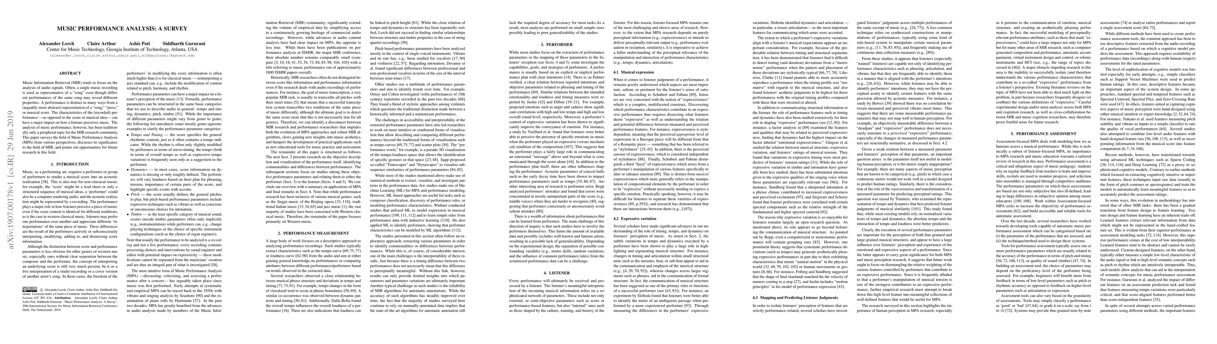 This paper surveys Music Performance Analysis (MPA), highlighting its significance in Music Information Retrieval (MIR) and noting how distinct performances can impact listener perception. It discusses the current state of MPA and identifies opportunities for future research.