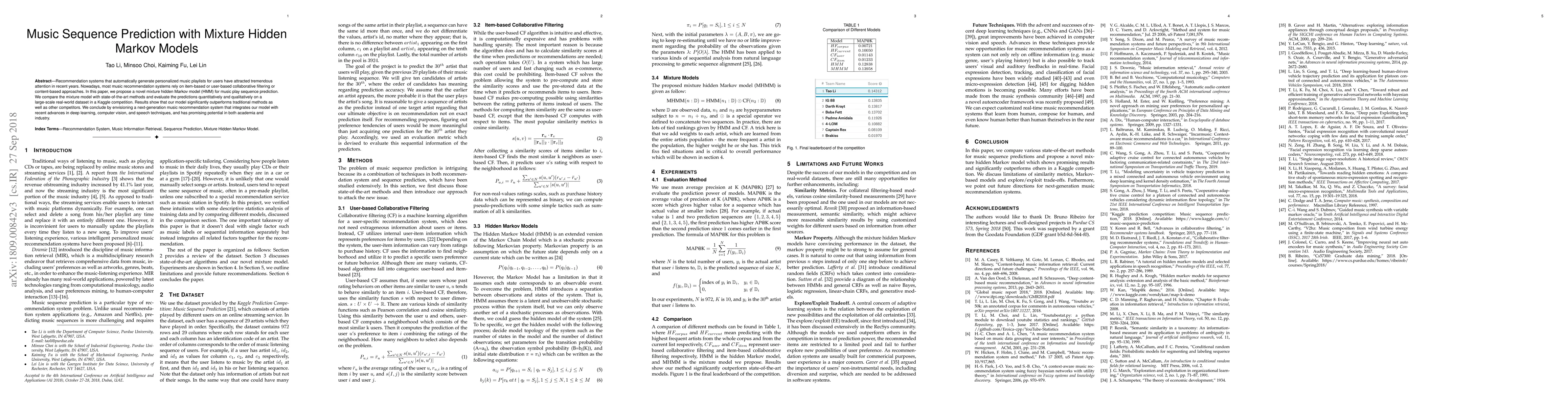 A new method using mixture hidden Markov models outperforms traditional music recommendation systems in a Kaggle competition, showing promising potential for next-generation personalized music playlists.