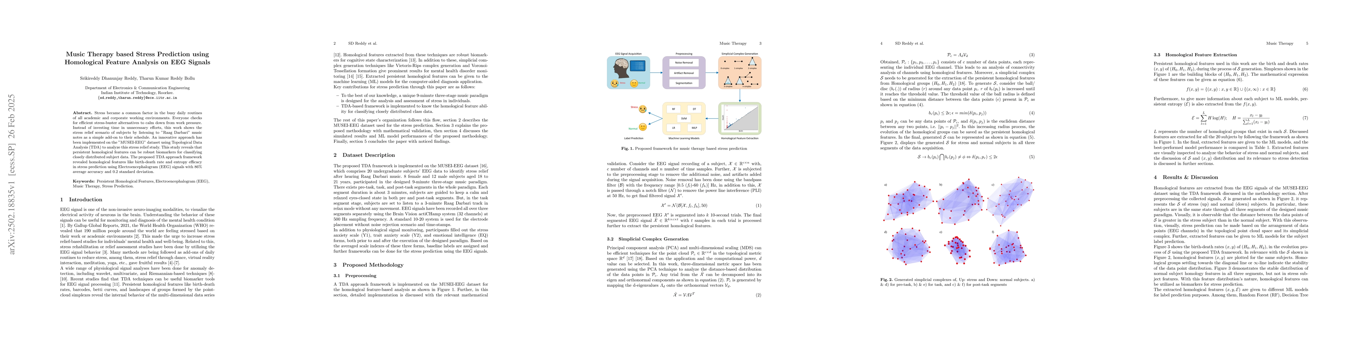 This research introduces a new approach for stress prediction by leveraging topological features from EEG signals during music therapy, distinguishing it from previous EEG-based stress detection methods.