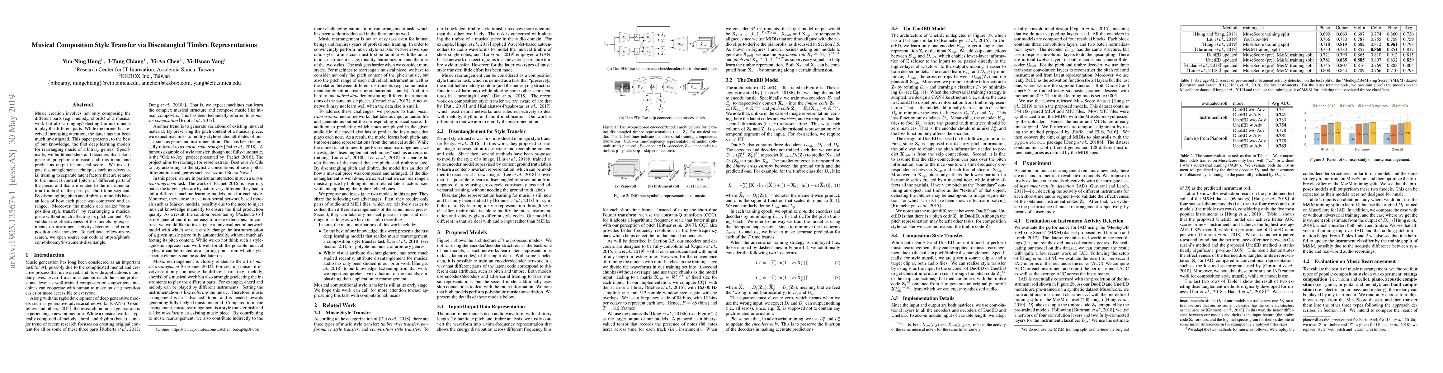This paper introduces deep learning models for rearranging music across genres by disentangling pitch and timbre representations, enabling "composition style transfer" without altering the musical content. The models achieve this through adversarial training and are validated via instrument activity detection and style transfer experiments.