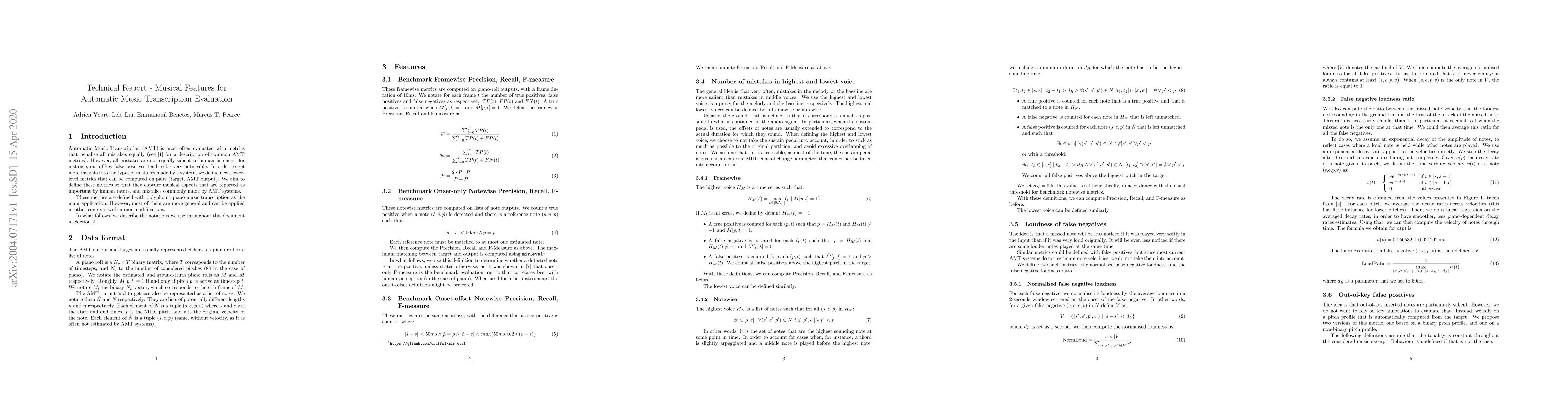 This technical report gives a detailed, formal description of the features introduced in the paper: Adrien Ycart, Lele Liu, Emmanouil Benetos and Marcus T. Pearce. "Investigating the Perceptual Validity of Evaluation Metrics for Automatic Piano Music Transcription", Transactions of the International Society for Music Information Retrieval (TISMIR), Accepted, 2020.
