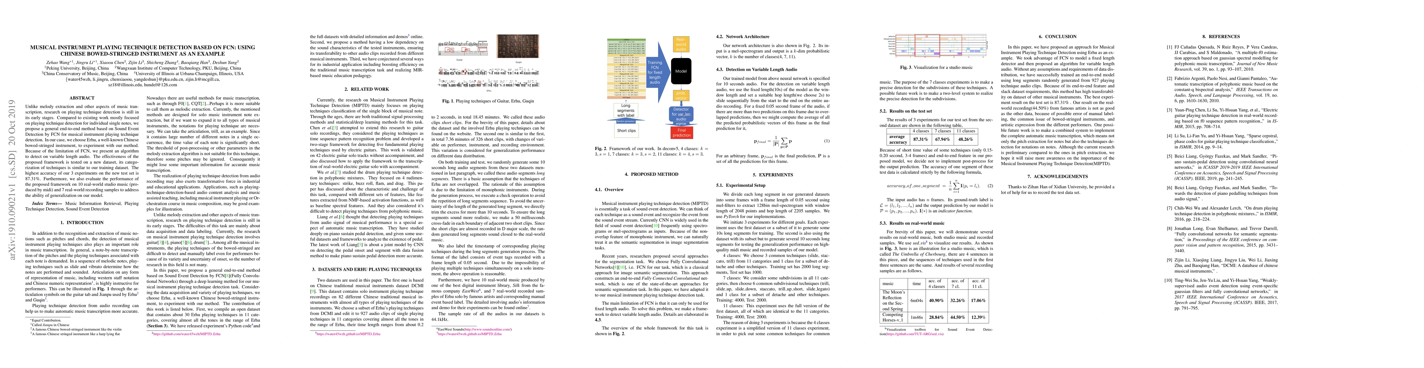 This research proposes an end-to-end method using Fully Convolutional Networks (FCN) for detecting playing techniques of the Erhu, a Chinese bowed-stringed instrument. The method, tested on a new dataset, achieves an accuracy of 87.31%, and shows generalization to real-world studio and recording samples.