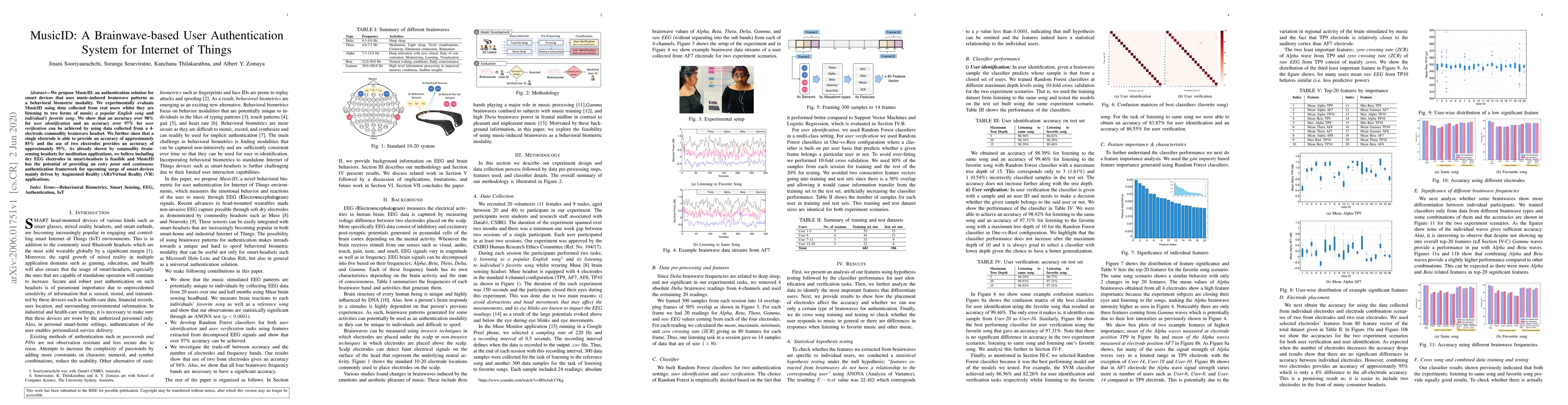 MusicID is a brainwave-based authentication system for IoT devices using music-induced brainwave patterns, achieving over 98% accuracy for user identification. It demonstrates potential for continuous authentication in AR/VR applications.
