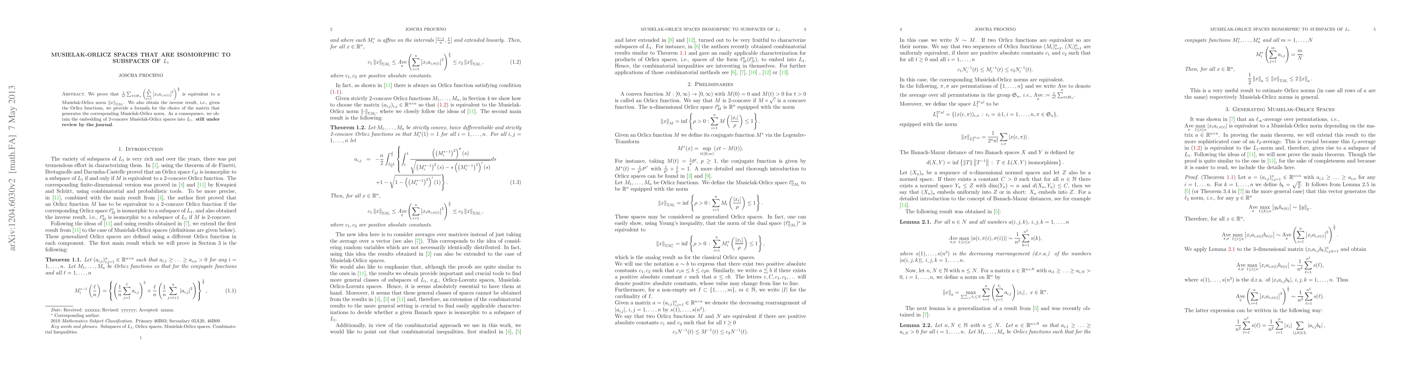 In this note we prove that $\frac{1}{n!} \sum_{\pi} (\sum_{i=1}^n |x_i a_{i,\pi(i)} |^2)^{1/2}$ is equivalent to a Musielak-Orlicz norm $\norm{x}_{\sum M_i}$. We also obtain the inverse result, i.e., given the Orlicz functions, we provide a formula for the choice of the matrix that generates the corresponding Musielak-Orlicz norm. As a consequence, we obtain the embedding of 2-concave Musielak-Orlicz spaces into L_1.