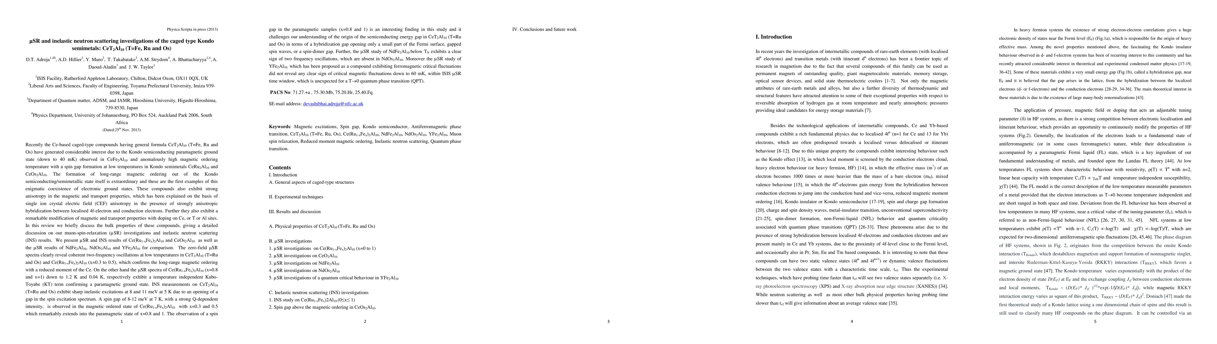 Recently the Ce-based caged-type compounds having general formula CeT2Al10 (T=Fe, Ru and Os) have generated considerable interest due to the Kondo semiconducting paramagnetic ground state (down to 40 mK) observed in CeFe2Al10 and anomalously high magnetic ordering temperature with a spin gap formation at low temperatures in Kondo semimetals CeRu2Al10 and CeOs2Al10. The formation of long-range magnetic ordering out of the Kondo semiconducting/semimetallic state itself is extraordinary and these are the first examples of this enigmatic coexistence of electronic ground states. These compounds also exhibit strong anisotropy in the magnetic and transport properties, which has been explained on the basis of single ion crystal electric field (CEF) anisotropy in the presence of strongly anisotropic hybridization between localised 4f-electron and conduction electrons. Further they also exhibit a remarkable modification of magnetic and transport properties with doping on Ce, or T or Al sites. In this review we briefly discuss the bulk properties of these compounds, giving a detailed discussion on our muon-spin-relaxation (muSR) investigations and inelastic neutron scattering (INS) results.