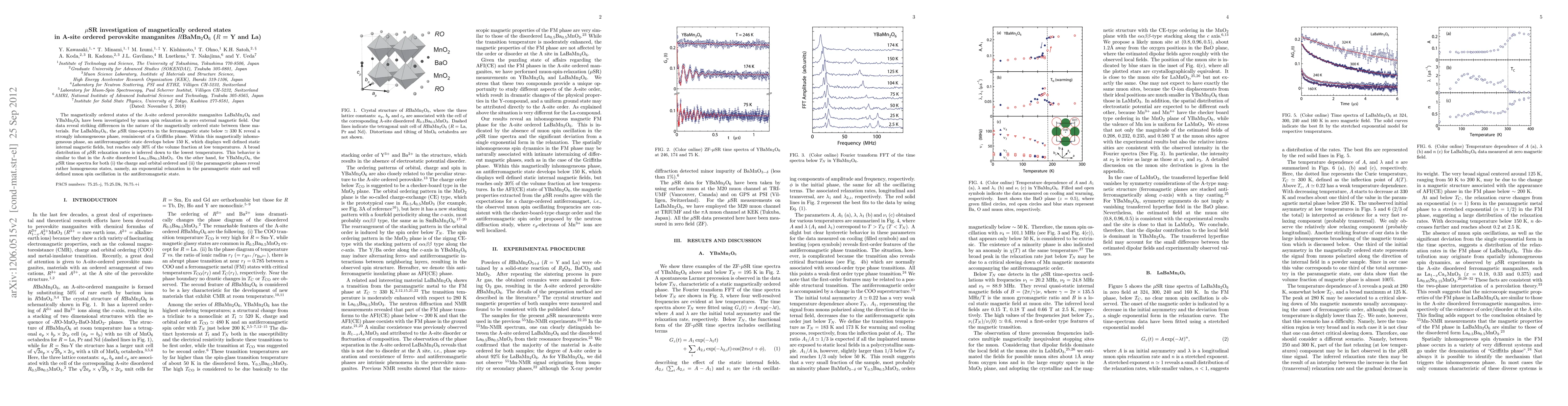 This study uses muon spin relaxation (muSR) to investigate the magnetically ordered states in perovskite manganites LaBaMn2O6 and YBaMn2O6, revealing distinct magnetic behaviors: LaBaMn2O6 exhibits a Griffiths phase and an antiferromagnetic state with limited volume fraction, while YBaMn2O6 shows homogeneous charge and orbital ordering followed by a well-defined antiferromagnetic state.