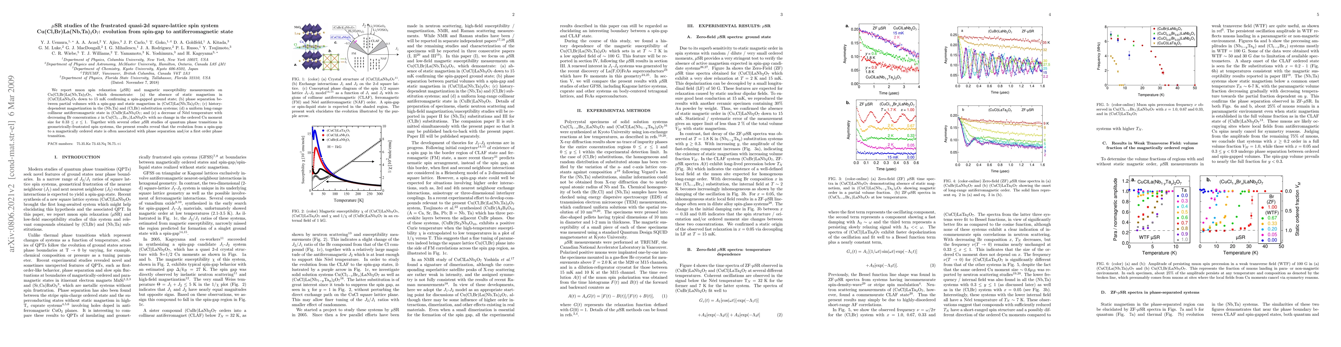 We report muon spin relaxation ($\mu$SR) and magnetic susceptibility measurements on Cu(Cl,Br)La(Nb,Ta)$_{2}$O$_{7}$, which demonstrate: (a) the absence of static magnetism in (CuCl)LaNb$_{2}$O$_{7}$ down to 15 mK confirming a spin-gapped ground state; (b) phase separation between partial volumes with a spin-gap and static magnetism in (CuCl)La(Nb,Ta)$_{2}$O$_{7}$; (c) history-dependent magnetization in the (Nb,Ta) and (Cl,Br) substitution systems; (d) a uniform long-range collinear antiferromagnetic state in (CuBr)LaNb$_{2}$O$_{7}$; and (e) a decrease of N\'eel temperature with decreasing Br concentration $x$ in Cu(Cl$_{1-x}$Br$_{x}$)LaNb$_{2}$O$_{7}$ with no change in the ordered Cu moment size for $0.33 \leq x \leq 1$. Together with several other $\mu$SR studies of quantum phase transitions in geometrically-frustrated spin systems, the present results reveal that the evolution from a spin-gap to a magnetically ordered state is often associated with phase separation and/or a first order phase transition.