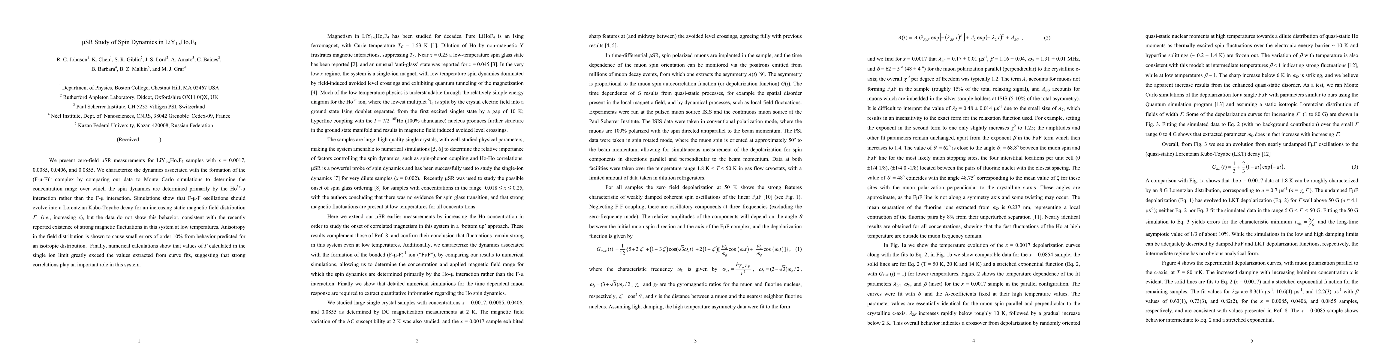 Researchers studied spin dynamics in LiY1-xHoxf4 using zero-field muon spectroscopy, finding that strong magnetic fluctuations exist at low temperatures, contradicting simulated behavior, and highlighting the importance of correlations in this system.
