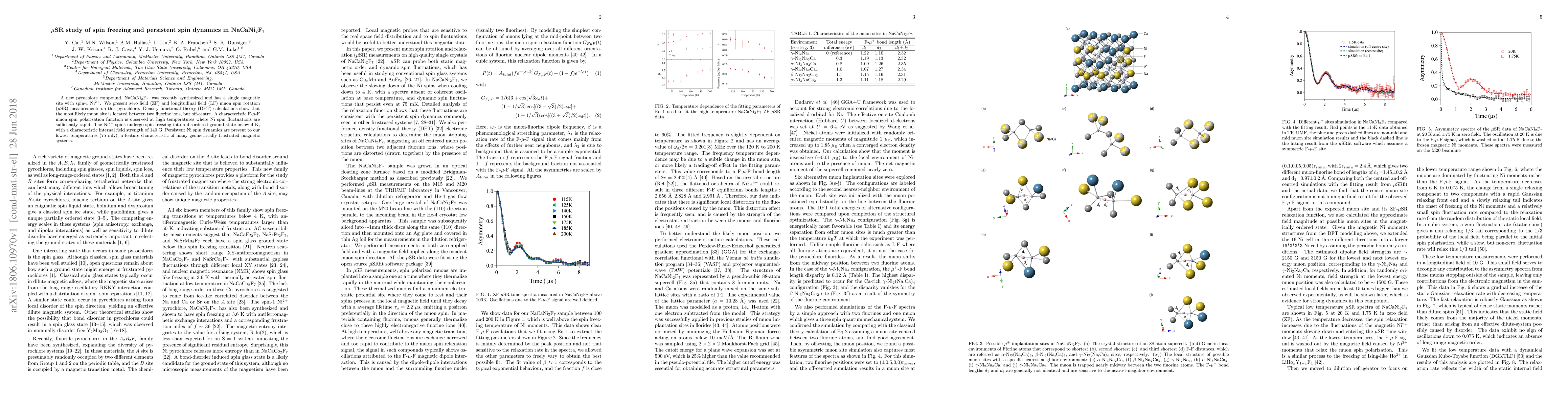 A new pyrochlore compound, NaCaNi$_2$F$_7$, was recently synthesized and has a single magnetic site with spin-1 Ni$^{2+}$. We present zero field (ZF) and longitudinal field (LF) muon spin rotation ($\mu$SR) measurements on this pyrochlore. Density functional theory (DFT) calculations show that the most likely muon site is located between two fluorine ions, but off-centre. A characteristic F-$\mu$-F muon spin polarization function is observed at high temperatures where Ni spin fluctuations are sufficiently rapid. The Ni$^{2+}$ spins undergo spin freezing into a disordered ground state below 4~K, with a characteristic internal field strength of 140~G. Persistent Ni spin dynamics are present to our lowest temperatures (75~mK), a feature characteristic of many geometrically frustrated magnetic systems.