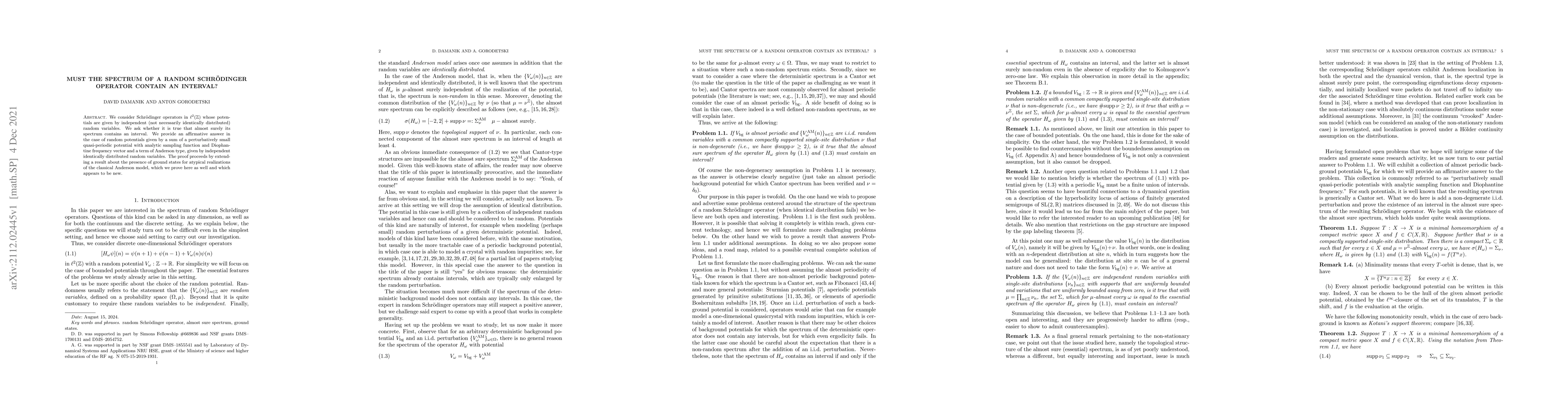 We consider Schr\"odinger operators in $\ell^2(\mathbb{Z})$ whose potentials are given by independent (not necessarily identically distributed) random variables. We ask whether it is true that almost surely its spectrum contains an interval. We provide an affirmative answer in the case of random potentials given by a sum of a perturbatively small quasi-periodic potential with analytic sampling function and Diophantine frequency vector and a term of Anderson type, given by independent identically distributed random variables. The proof proceeds by extending a result about the presence of ground states for atypical realizations of the classical Anderson model, which we prove here as well and which appears to be new.
