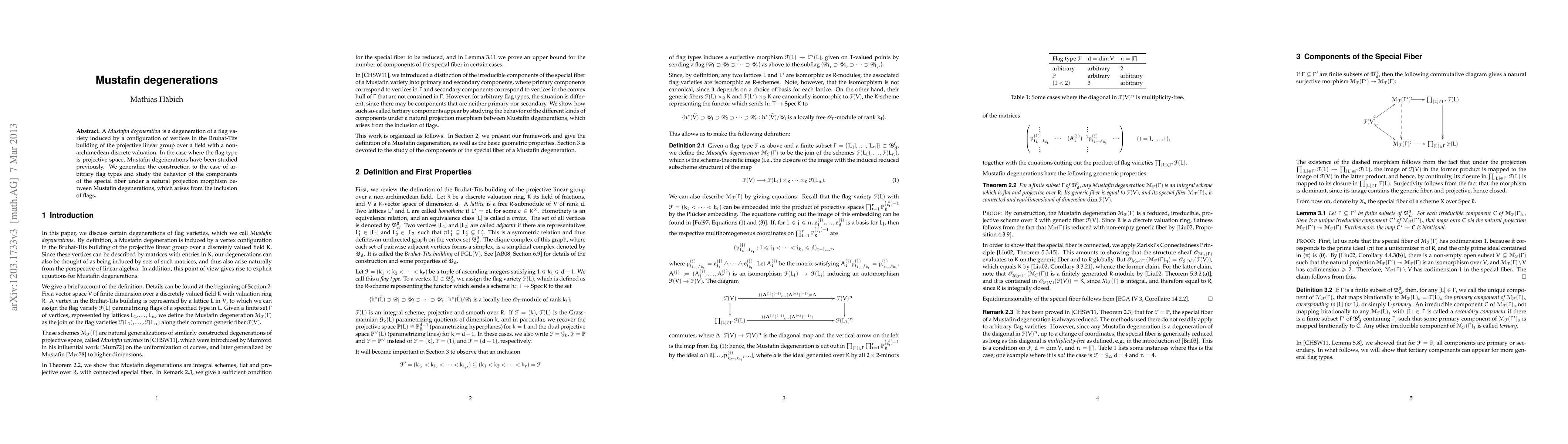 Researchers generalize the study of Mustafin degenerations to arbitrary flag types, examining reducedness in the special fiber and its behavior under a natural projection morphism.