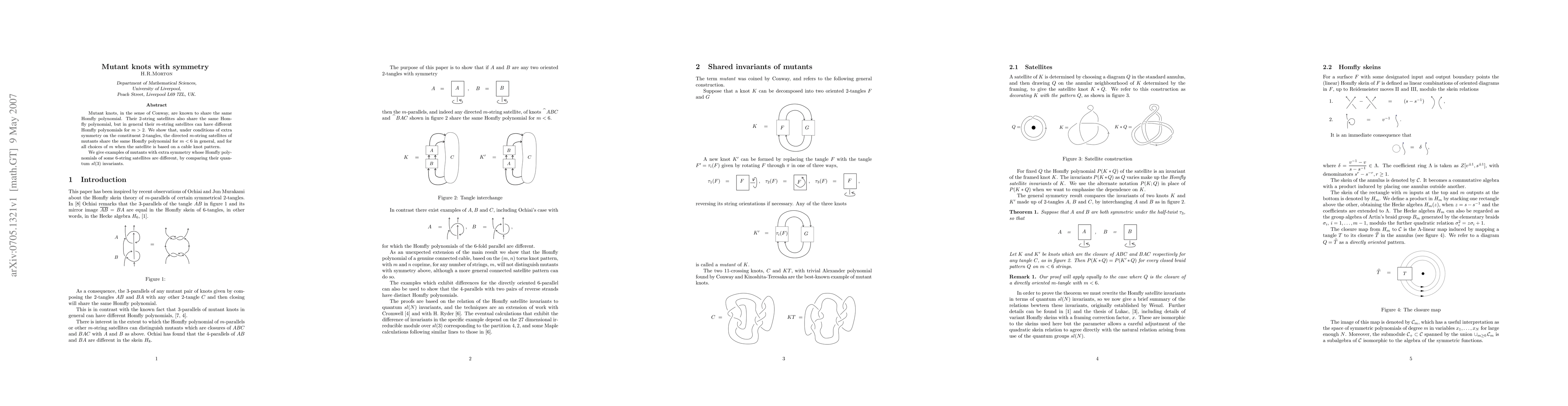 Mutant knots, in the sense of Conway, are known to share the same Homfly polynomial. Their 2-string satellites also share the same Homfly polynomial, but in general their m-string satellites can have different Homfly polynomials for m>2. We show that, under conditions of extra symmetry on the constituent 2-tangles, the directed m-string satellites of mutants share the same Homfly polynomial for m<6 in general, and for all choices of m when the satellite is based on a cable knot pattern. We give examples of mutants with extra symmetry whose Homfly polynomials of some 6-string satellites are different, by comparing their quantum sl(3) invariants.