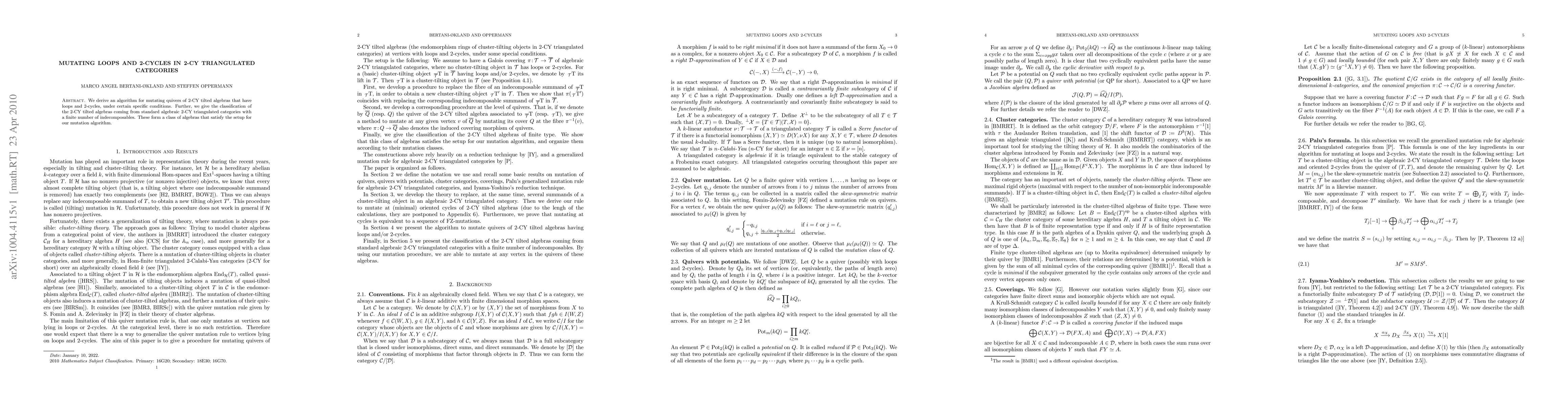 Summary: The paper presents an algorithm for mutating quivers of 2-CY tilted algebras with loops and 2-cycles, and classifies such algebras originating from standard algebraic 2-CY triangulated categories with a finite number of indecomposables.