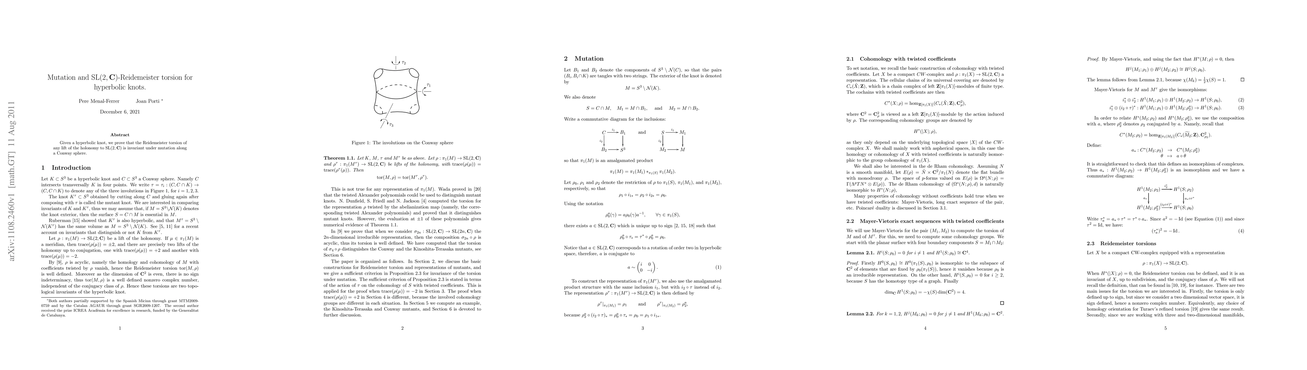 Summary: This paper demonstrates that the Reidemeister torsion of SL(2,C)-holonomy lifts for hyperbolic knots remains unchanged under mutation along a Conway sphere, establishing invariance in knot theory.