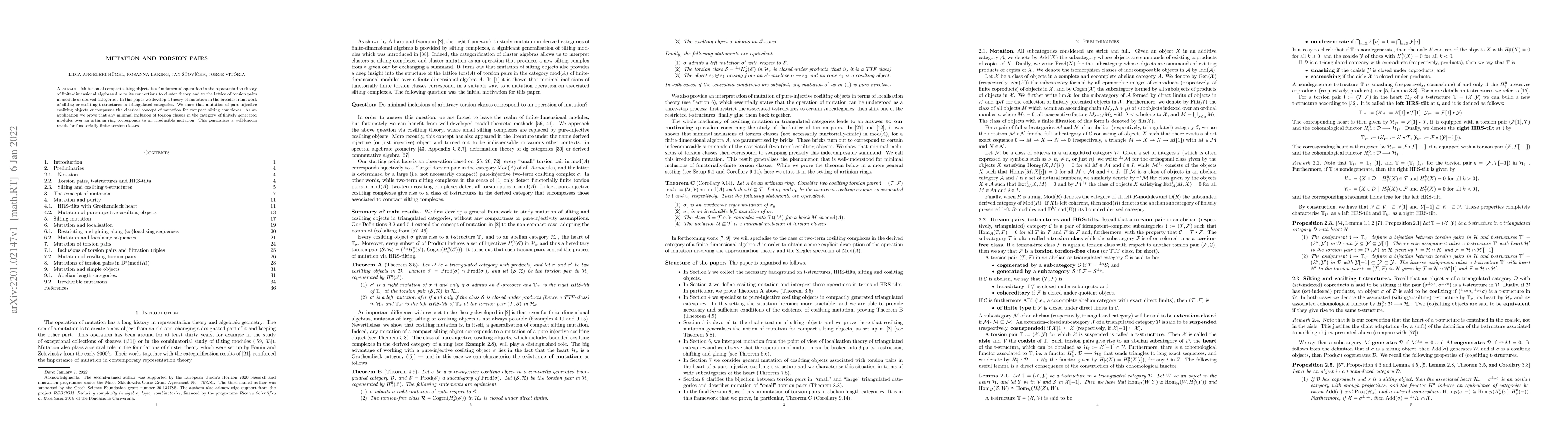 This paper develops a theory of mutation in triangulated categories, extending the concept to pure-injective cosilting objects within silting and cosilting t-structures. It demonstrates that these mutations generalize classical mutation of compact silting complexes and proves that any minimal inclusion of torsion classes in module categories over artinian rings corresponds to an irreducible mutation.