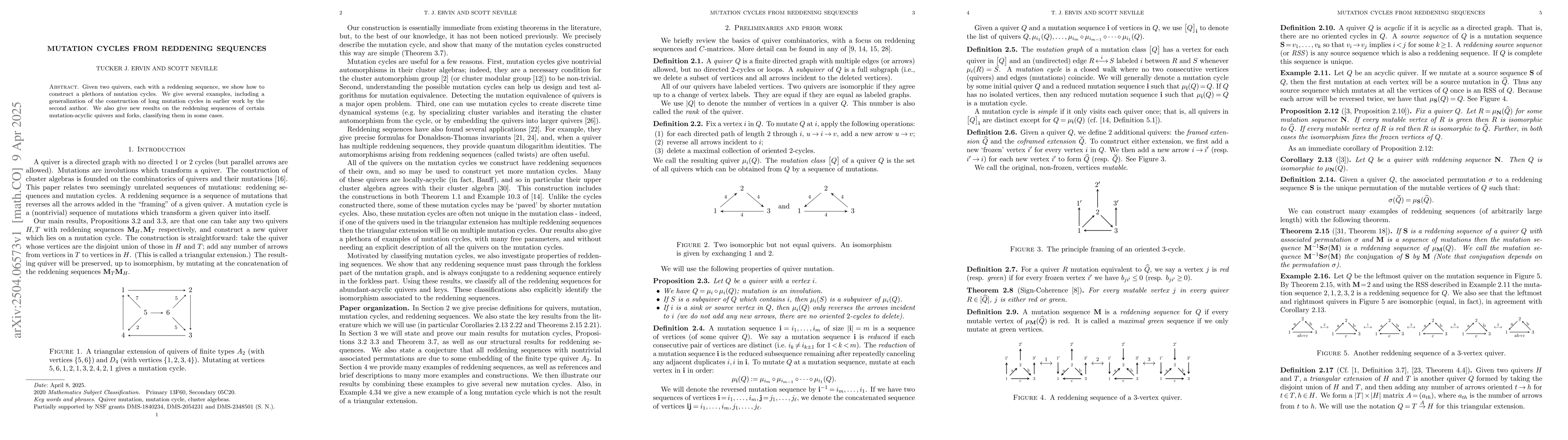 The research constructs mutation cycles from given reddening sequences of two quivers, generalizing previous work on long mutation cycles and providing new results on reddening sequences of mutation-acyclic quivers and forks.